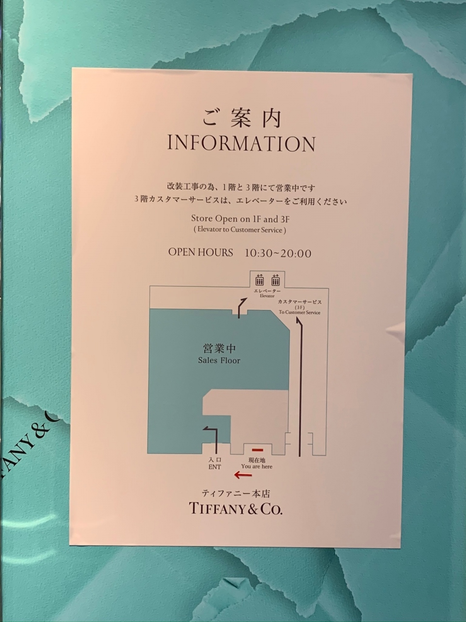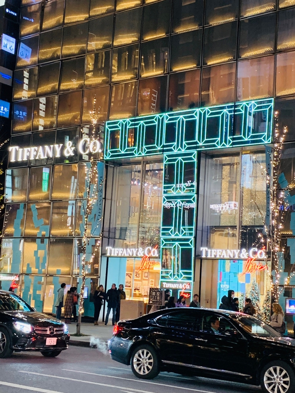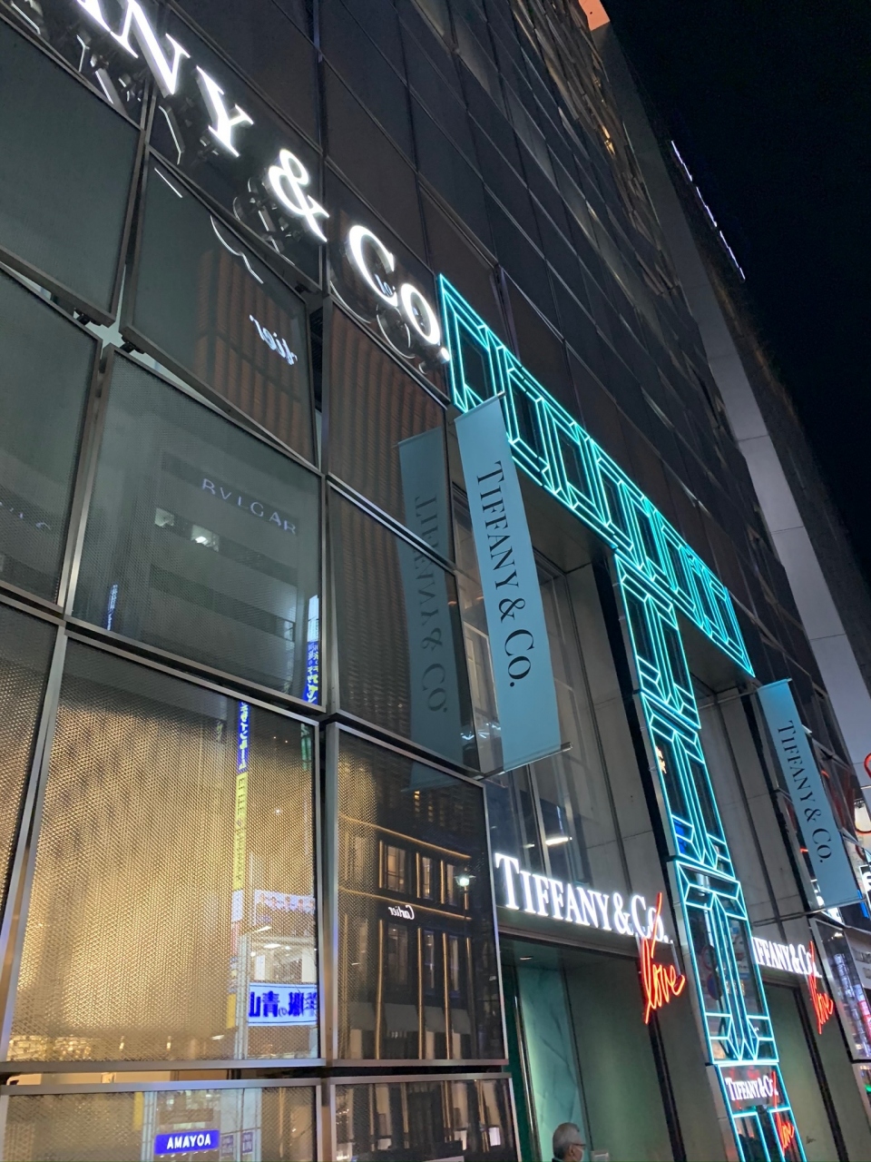 「 中央通り 」 に あって、『 T 』の外観が 存在感ある 【 ティファニー 】