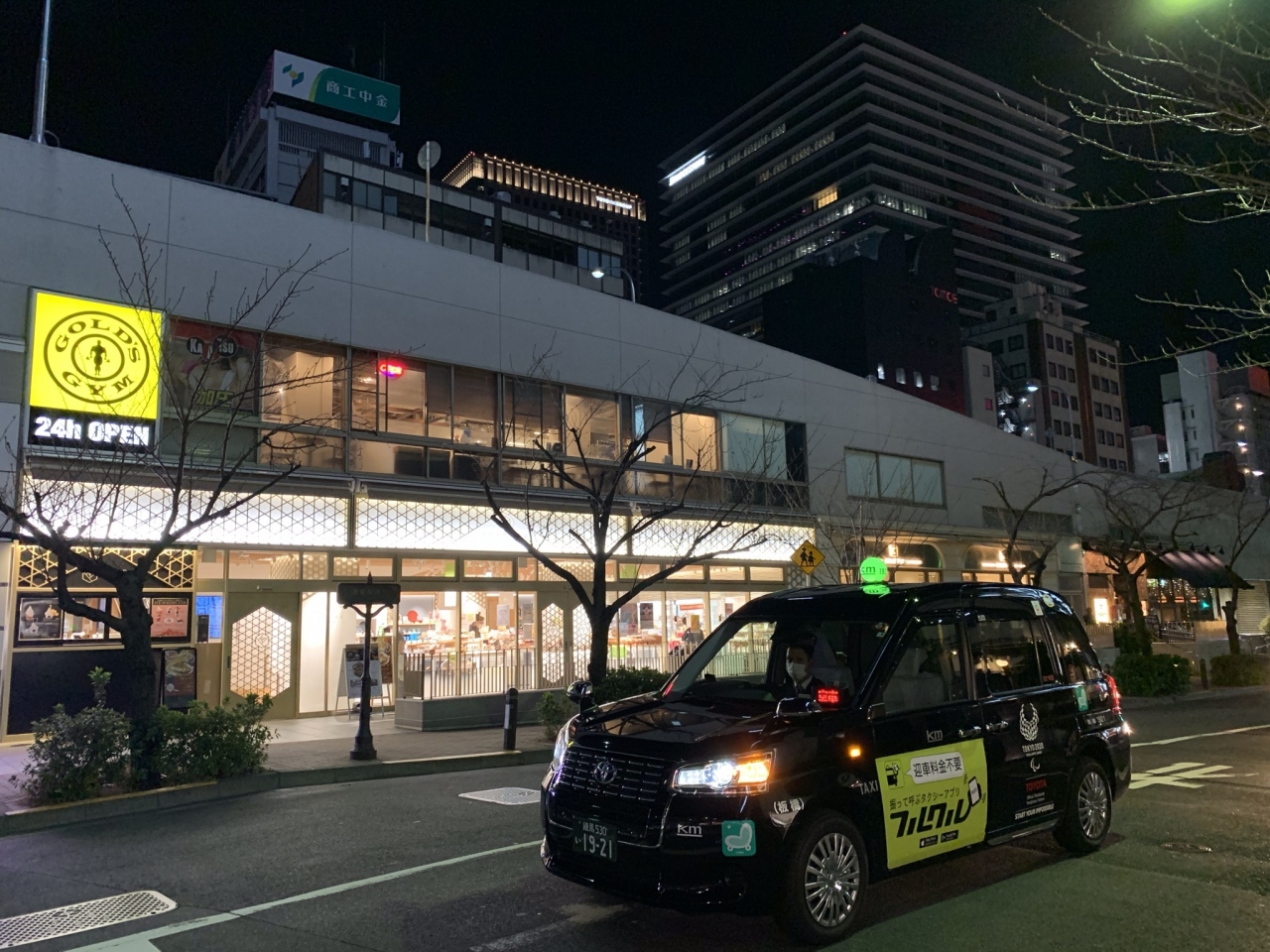 「 GOLD' S GYM 」 24h OPEN の 黄色いサインが まぶしい!