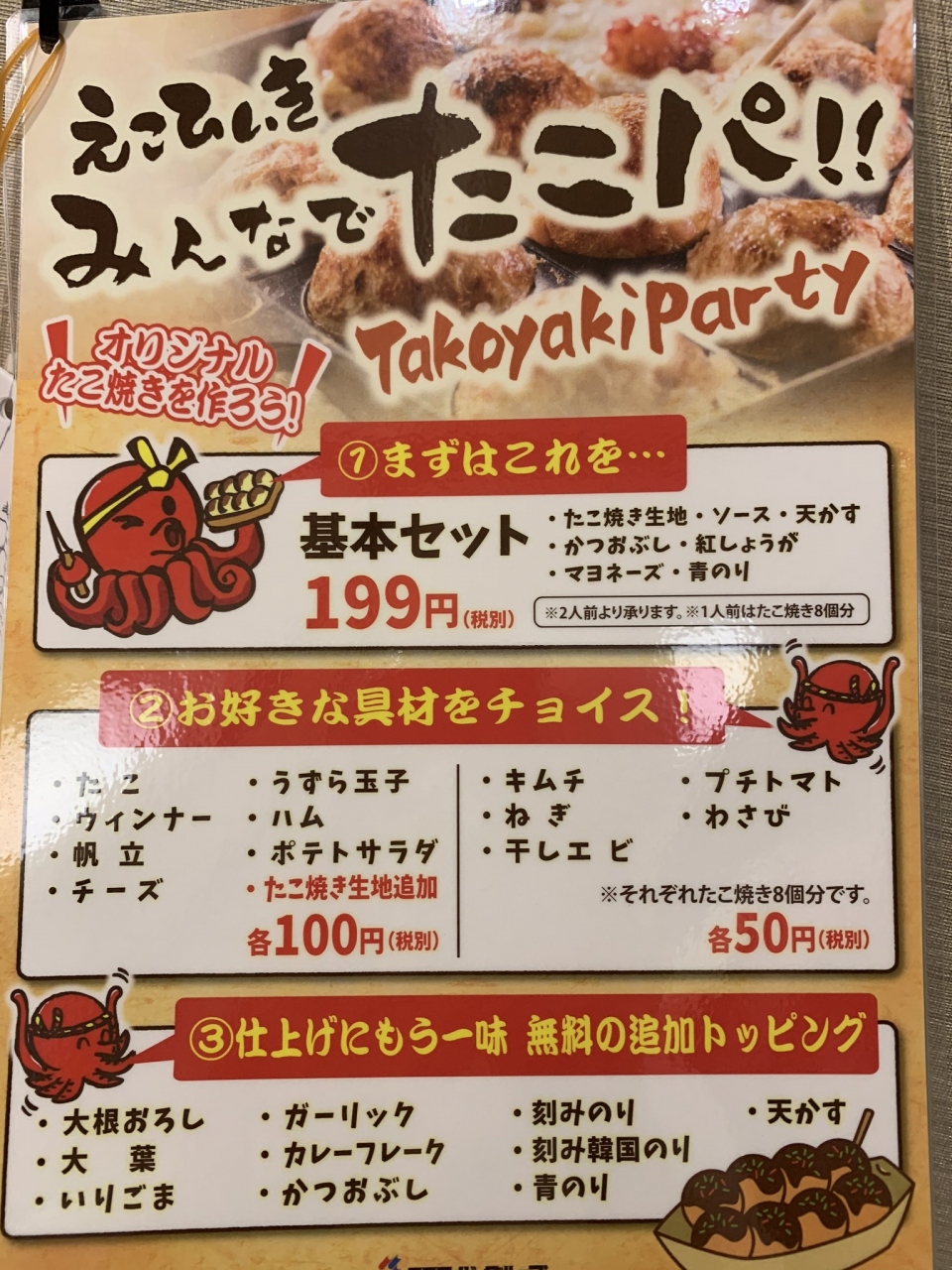 「 たこパ 」 という 「たこ焼きパーティーメニュー 」が 気になったよ