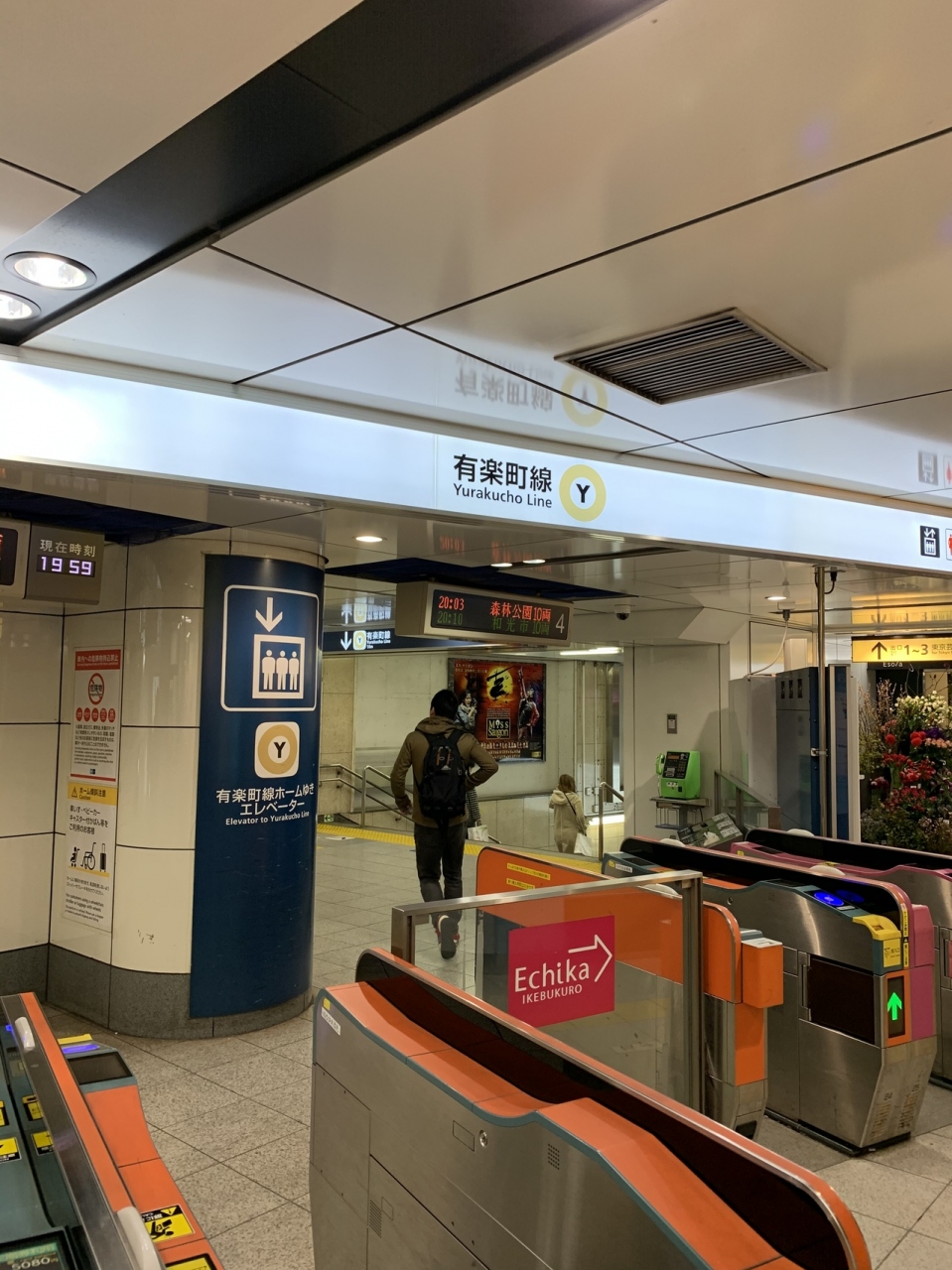 後日 土曜日 夜「池袋駅」から「銀座一丁目駅」まで利用した際は、