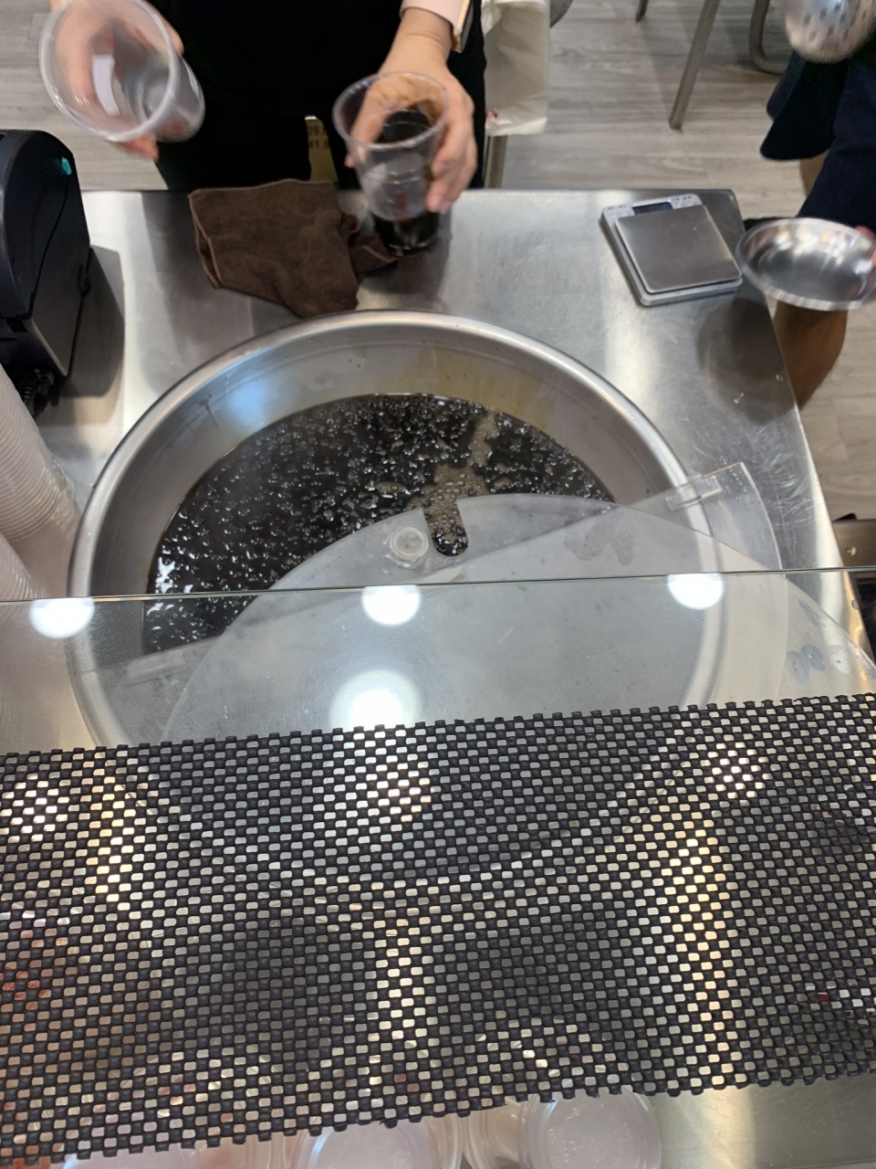 店頭で タピオカを 作ってる工程を 見せてくれてた