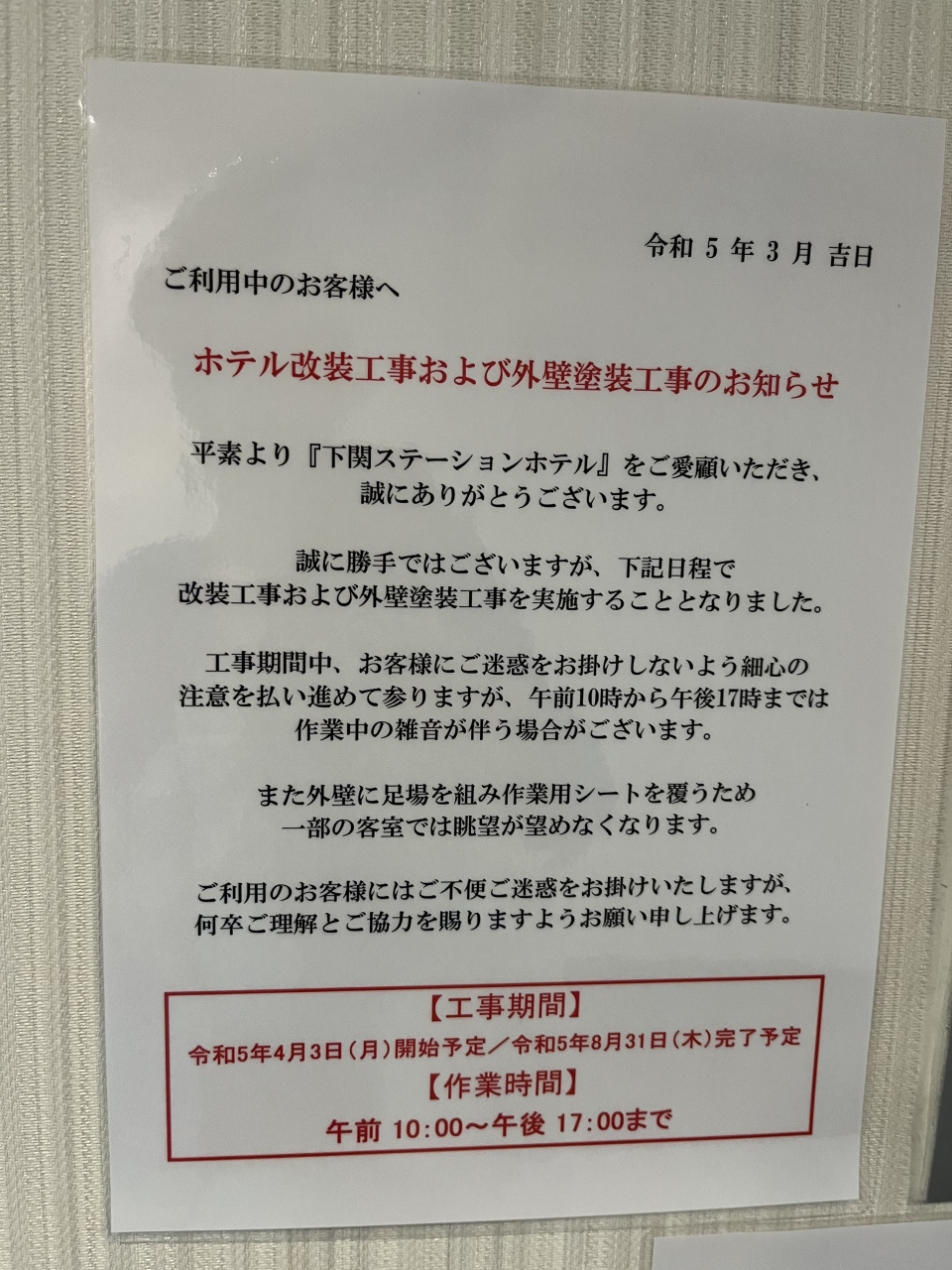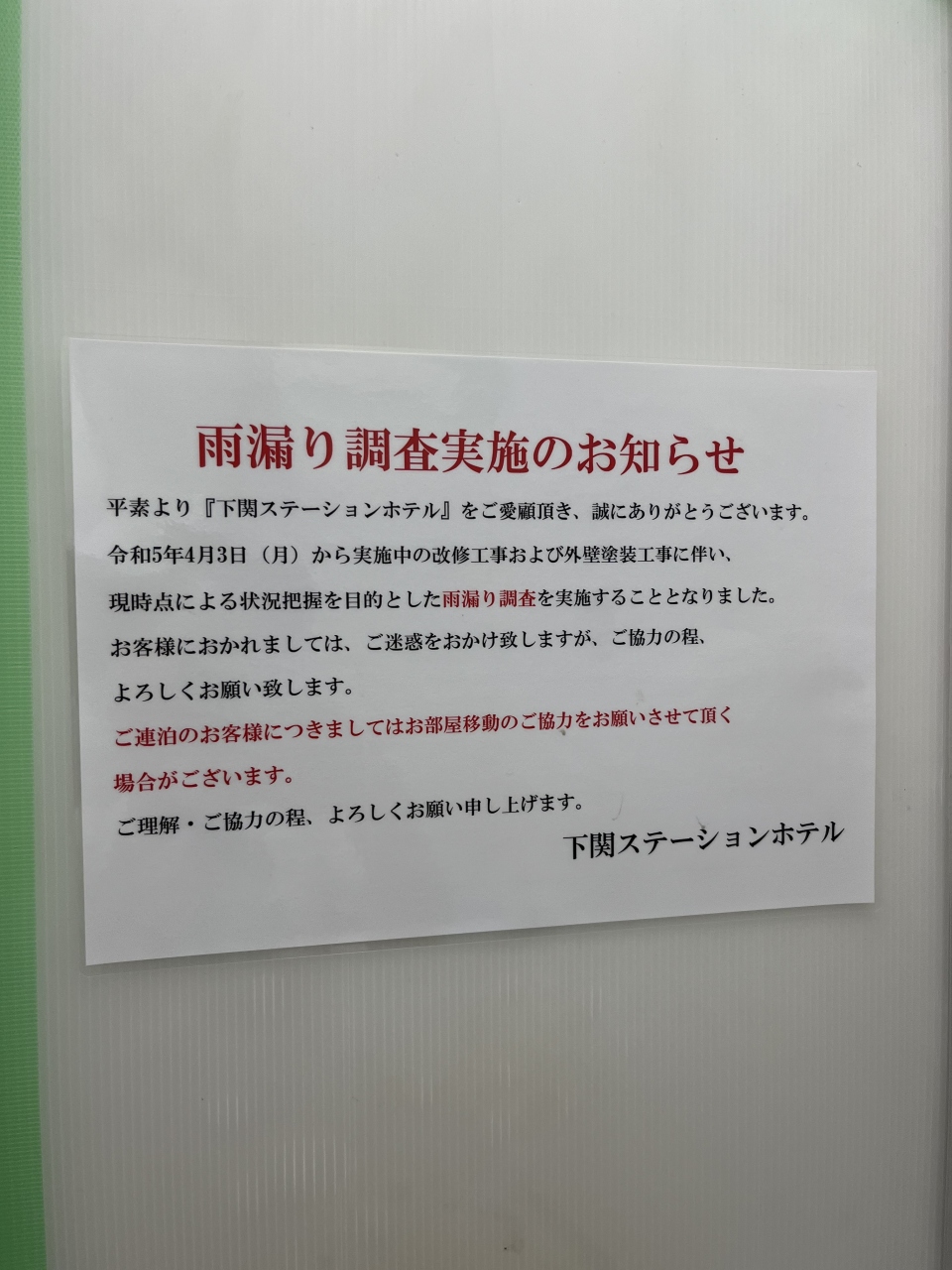 下関ステーションホテル 改装工事 および 外壁塗装工事 雨漏り調査