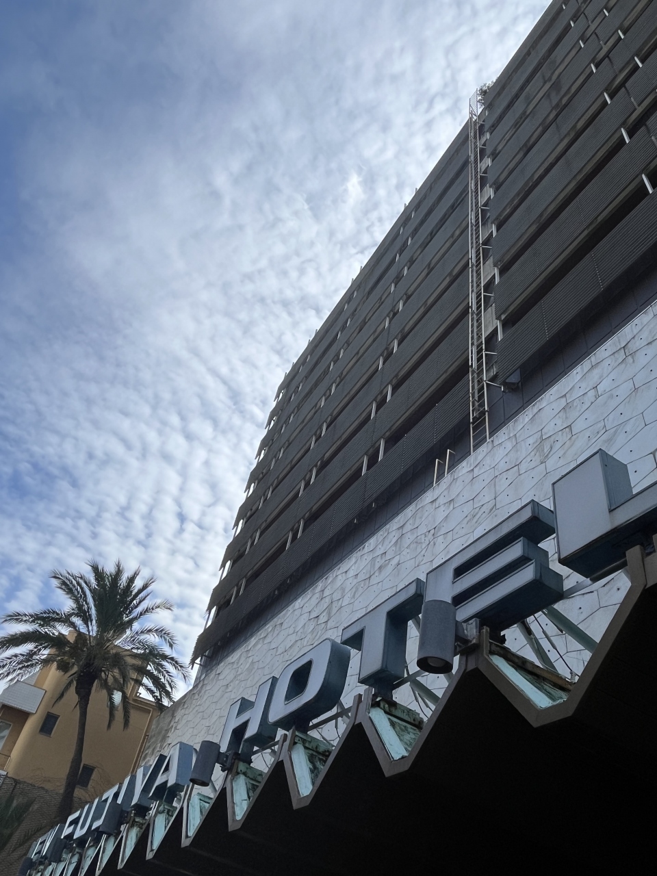 当日…チェックインしようと レンタカーをホテルの前に停めましたが、なんだか変…