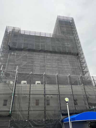 『改装工事 および 外壁塗装工事 に伴い 雨漏り調査 実施 』の 貼り紙がありました。