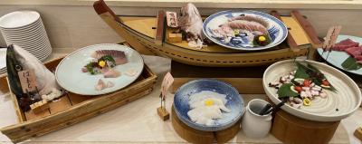 お食事は 夕食は 会席料理で、朝食はバイキングでした。朝食のしらす丼 が美味しかったです♪