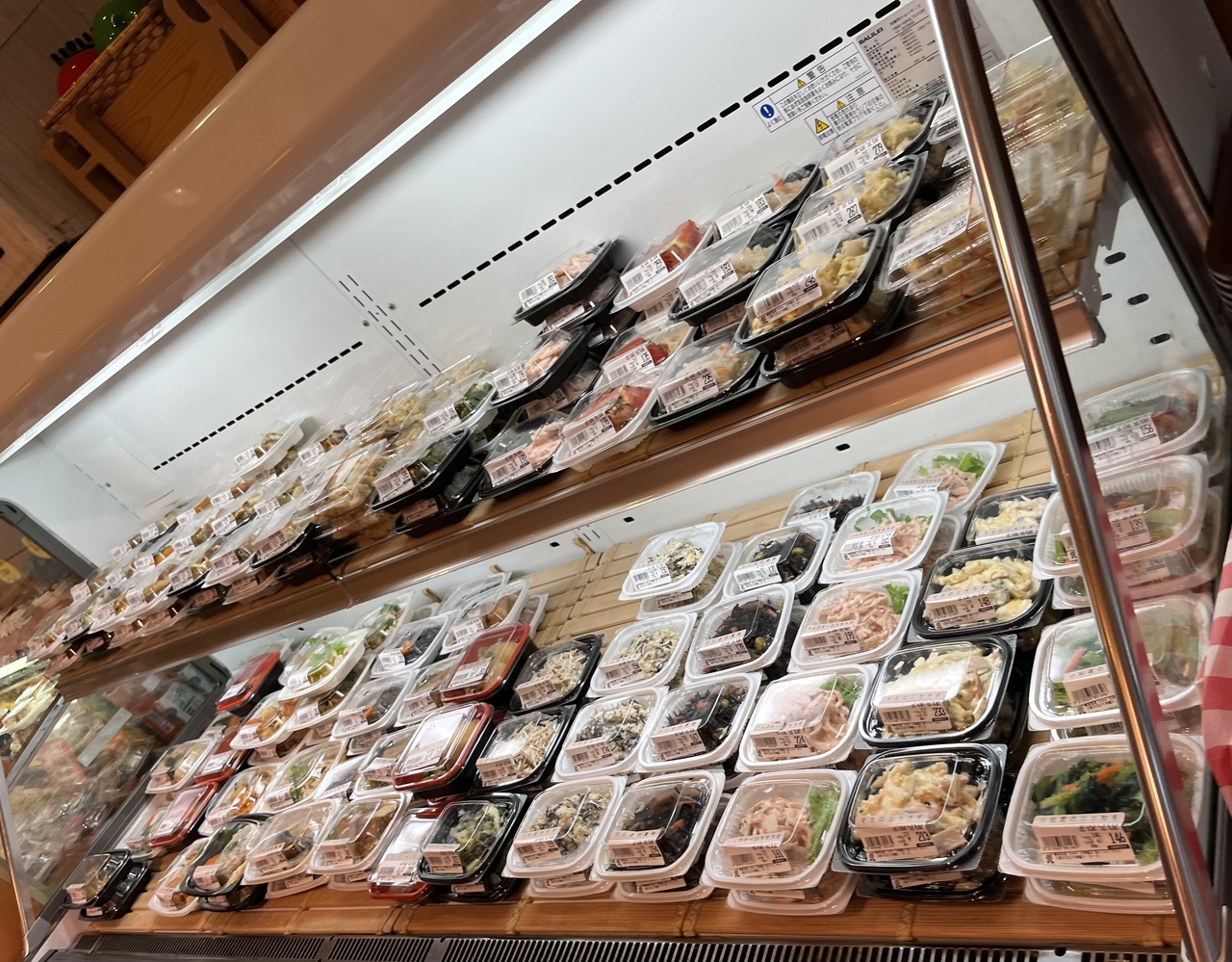 店内には、「煮さば弁当」「ハンバーグクリームソース」「じゃがいもゴロゴロカレー」「三色丼」「エビフライタルタル丼」などの お弁当。
