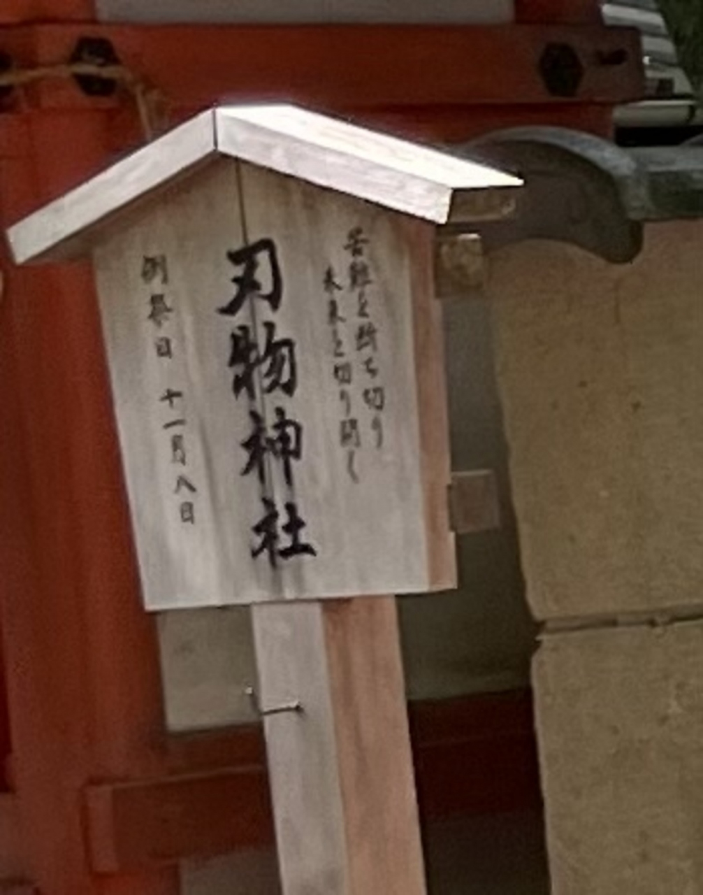 八坂神社 境内 「苦難を断ち切り 未来を切り開く 刃物神社」