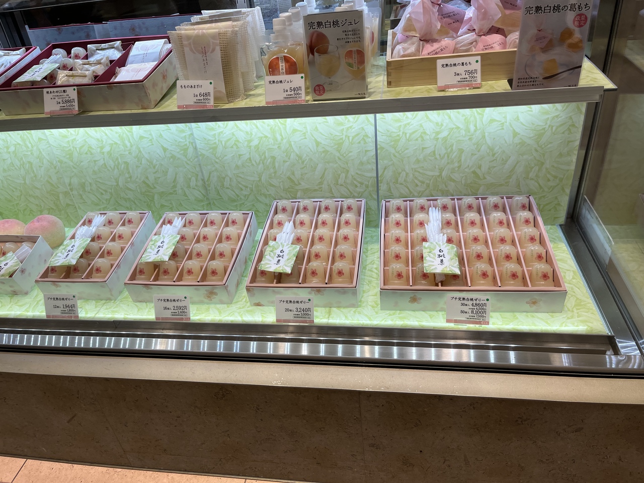 ガラスショーケースには 「完熟白桃ゼリー」が目立ってます。