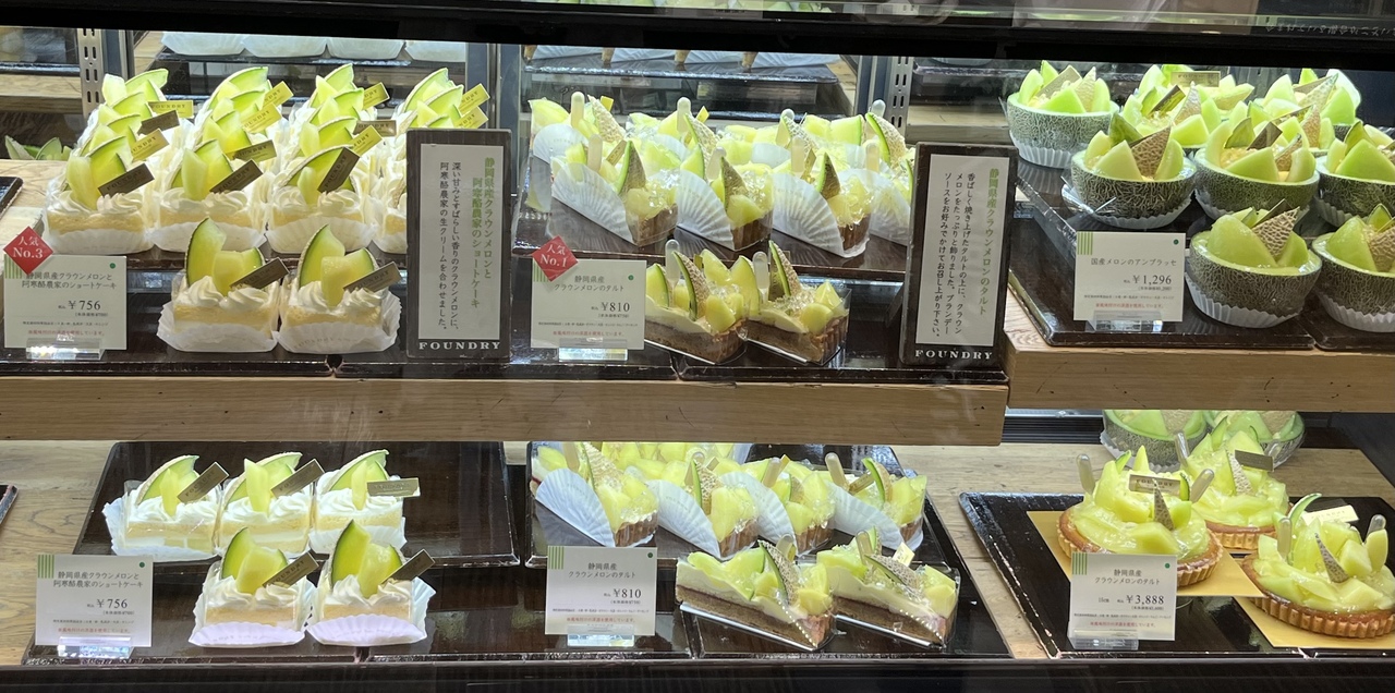 店内には、美味しそうなメロンケーキ・タルト が並び キラキラしていました。
