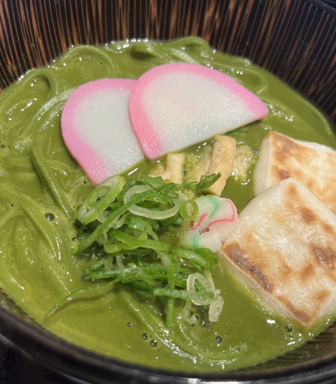 しかも うどん も 抹茶 を 練り込んでいるので 抹茶色 です。