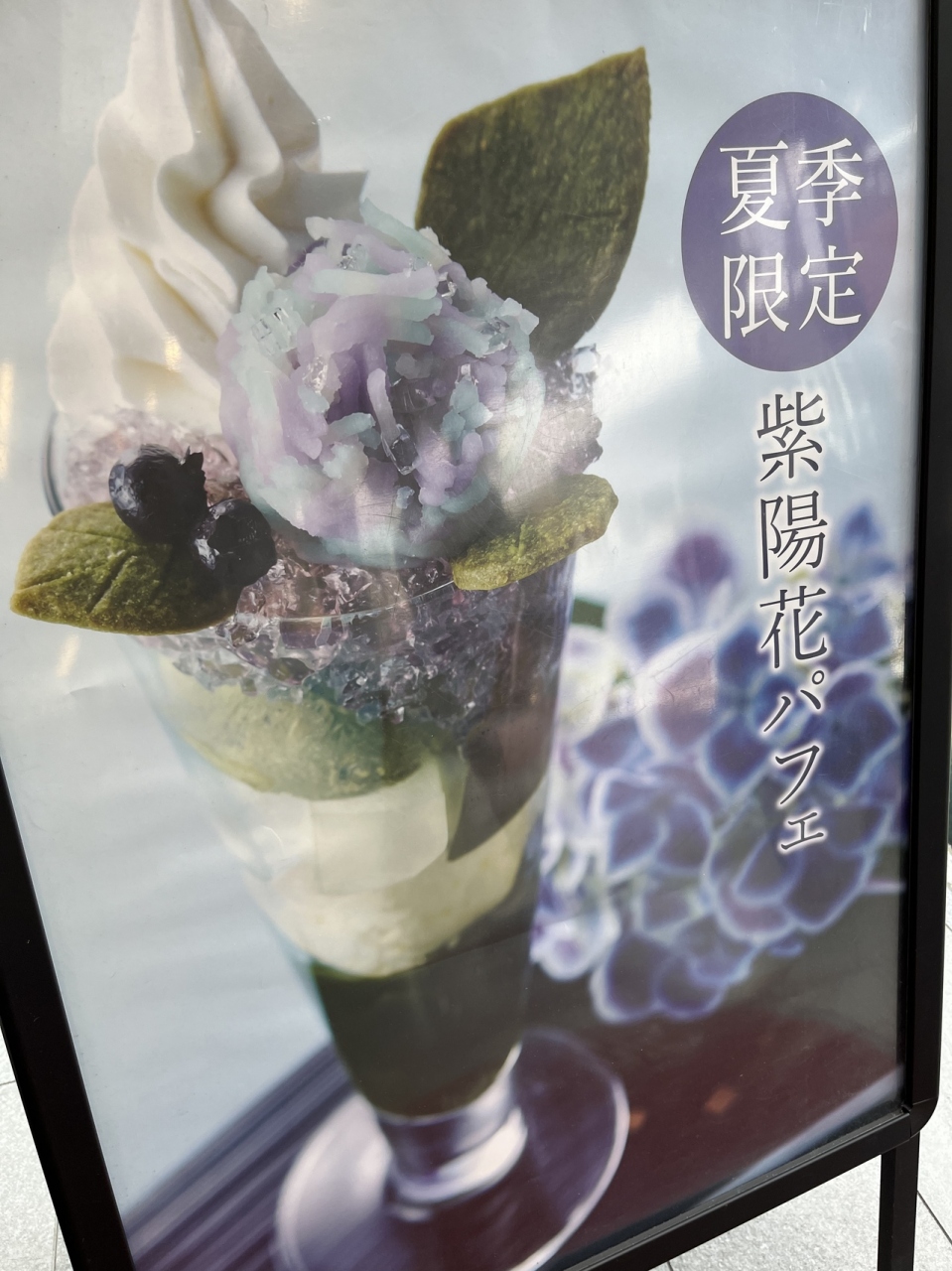 ほとんどの お客さんが 食べていたのは〈紫陽花パフェ〉夏季限定メニュー です。