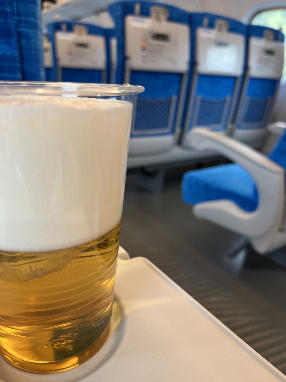 足元は 広くて快適だし、車内で ゆっくり ビール と お弁当(^^)