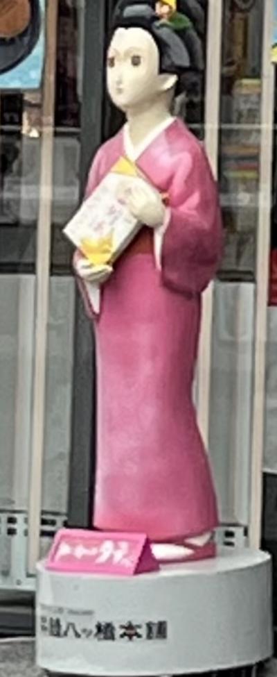 京名物 井筒八ッ橋の「夕子」がお出迎えしてくれます。