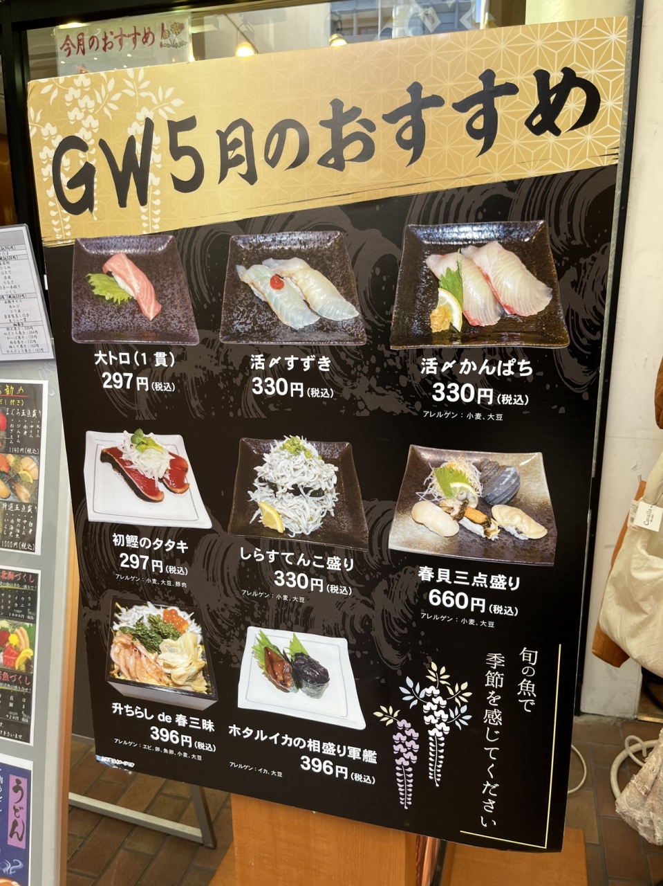 GW 5月のおすすめ メニューありましたえ。旬のお魚で季節を感じるのが◎- 旅行時期