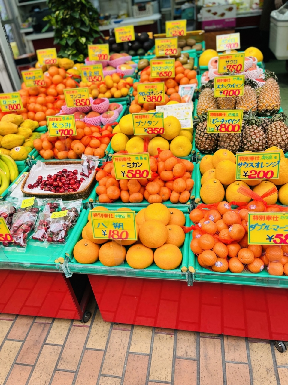 店内には 南洋トロピカルフルーツが カラフルに 並んでいて