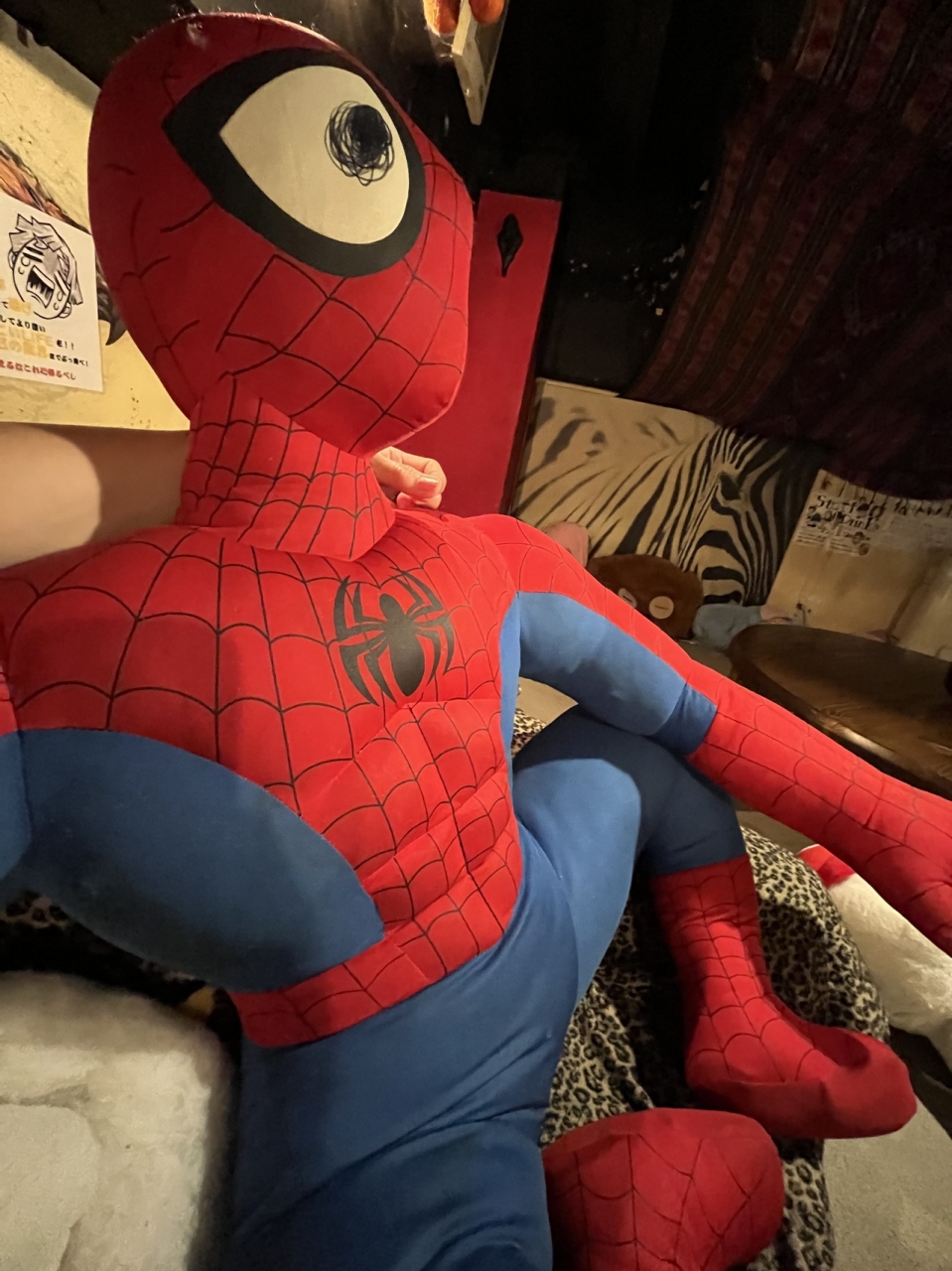 大きな〈スパイダーマン〉と一緒に お食事開始!