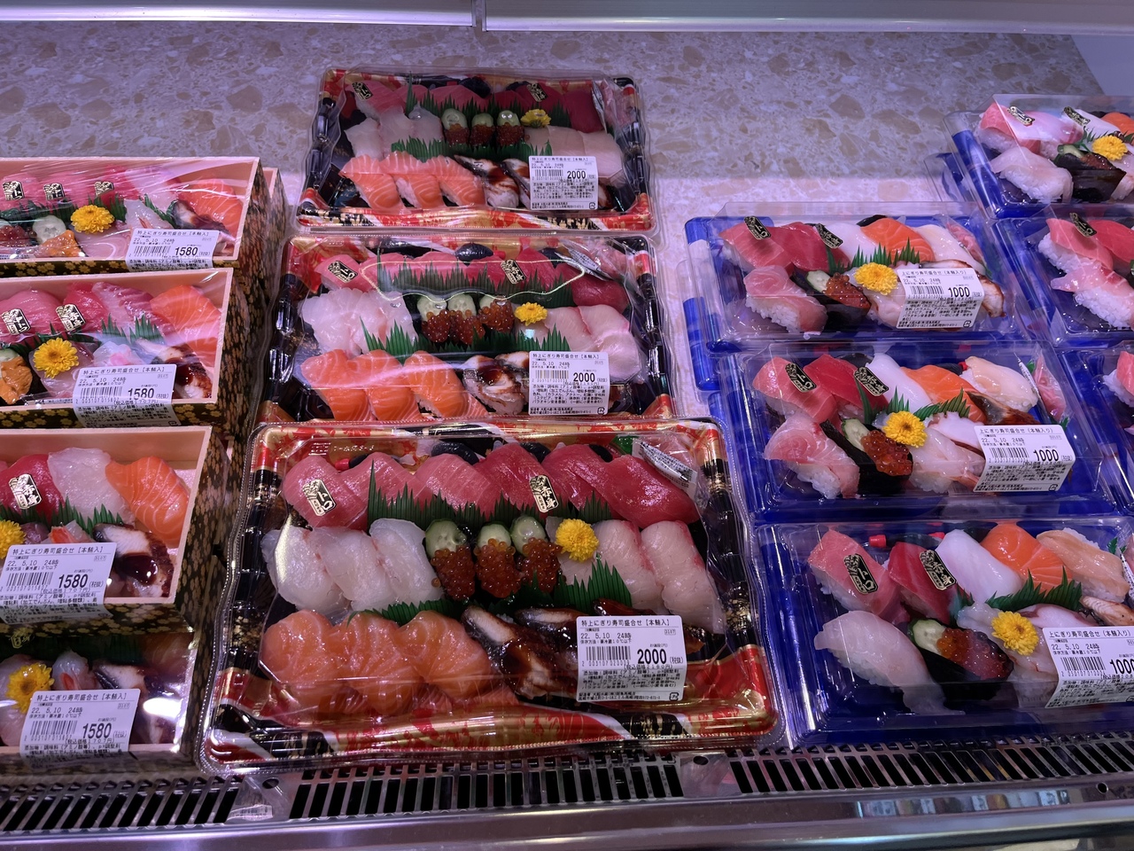 お客さんがたくさんいて お持ち帰りのお寿司が 飛ぶように 売れていました。- 旅行時期