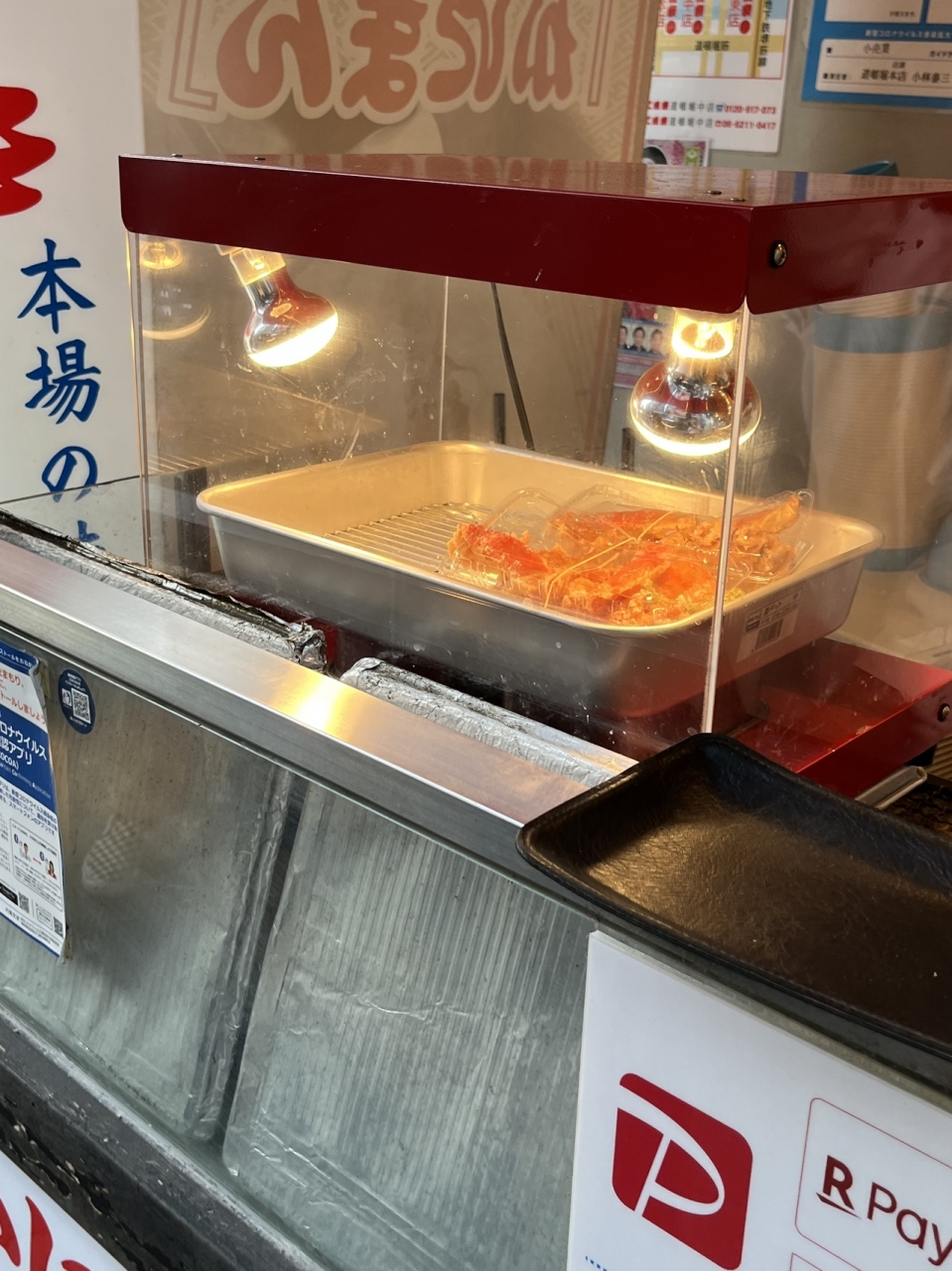 店内ガラスショーケースには、「やわらかイカ串」「えだ豆大判」「まるごとコーン」「コロッケ野菜」「ガーリックシュリンプボールスパイシー」など…いろいろありました。
