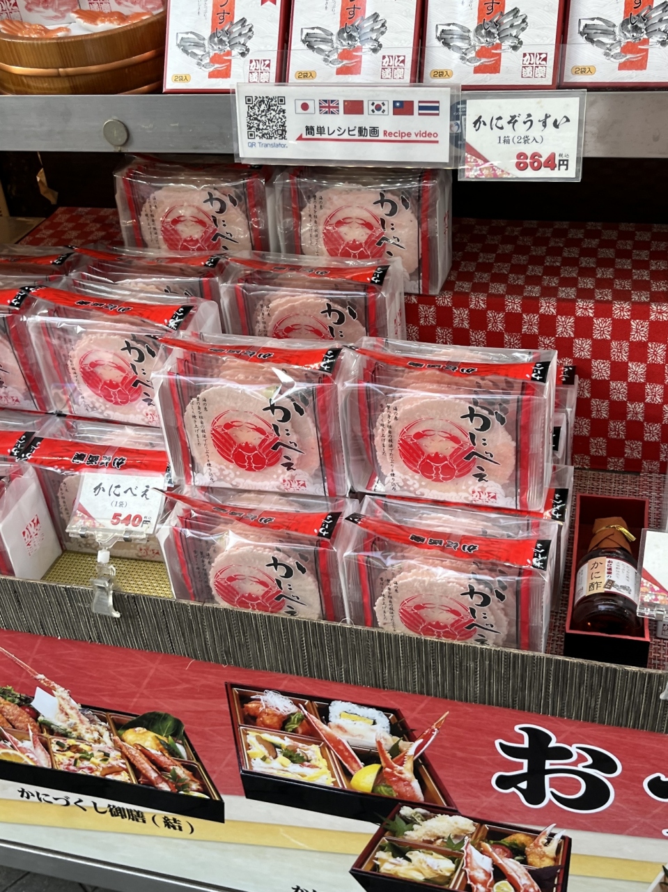 店内飲食以外に お気軽に店頭では、「かに炭火焼き」「かにべえ」「かにぞうすい」など