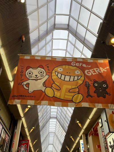 上を見上げると、「みにゃみん」など マスコットキャラクター- 旅行時期