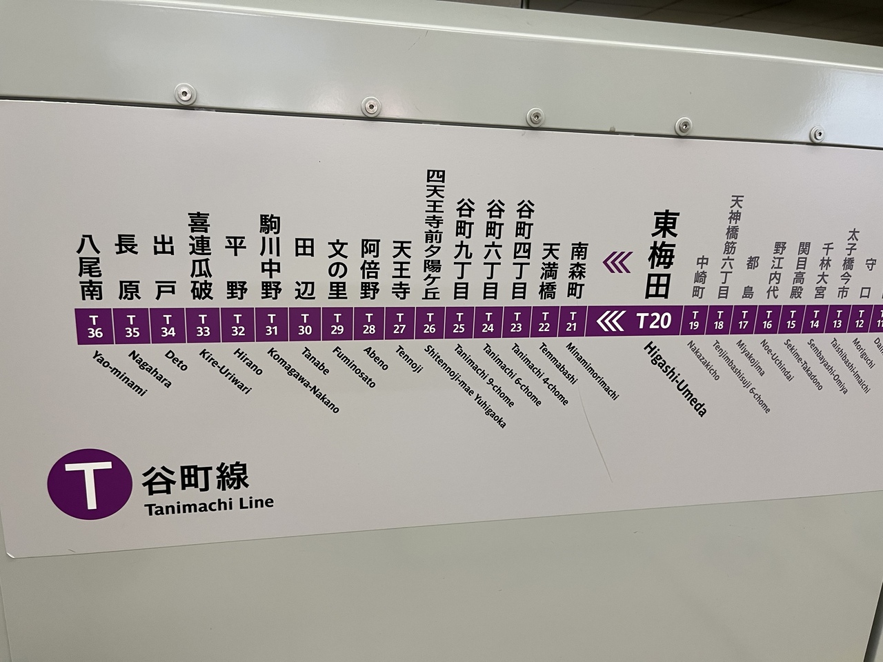 今回初めて こちらの【 大阪メトロ 谷町線(2号線) 】に乗車しました。