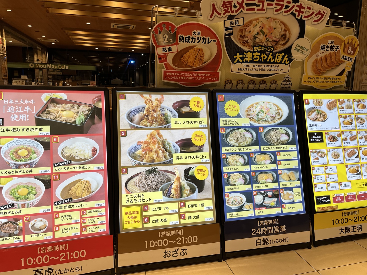 真夜中の フードコートで、唯一 24時間営業している ありがたい お店です。