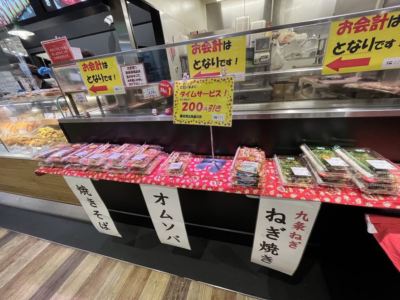 でも「鉄板焼」メニューが「タイムサービス」で200円引きでした。