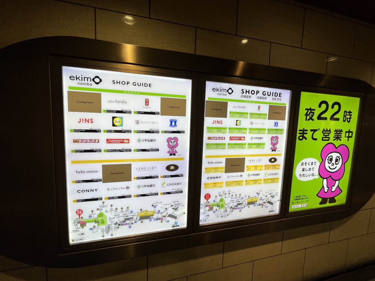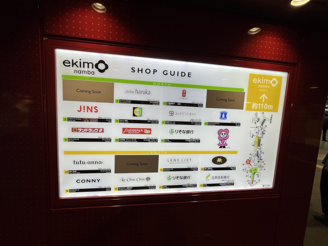 こちら【 ekimo なんば 】は〈NORTH ゾーン〉と〈SOUTH ゾーン〉があって、
