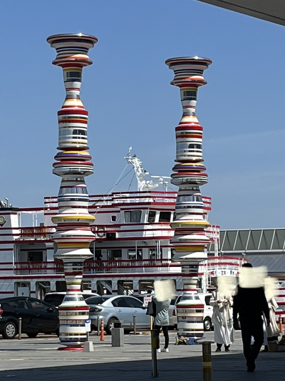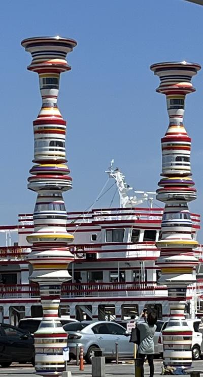 高さ8mのカラフルな2本の柱。