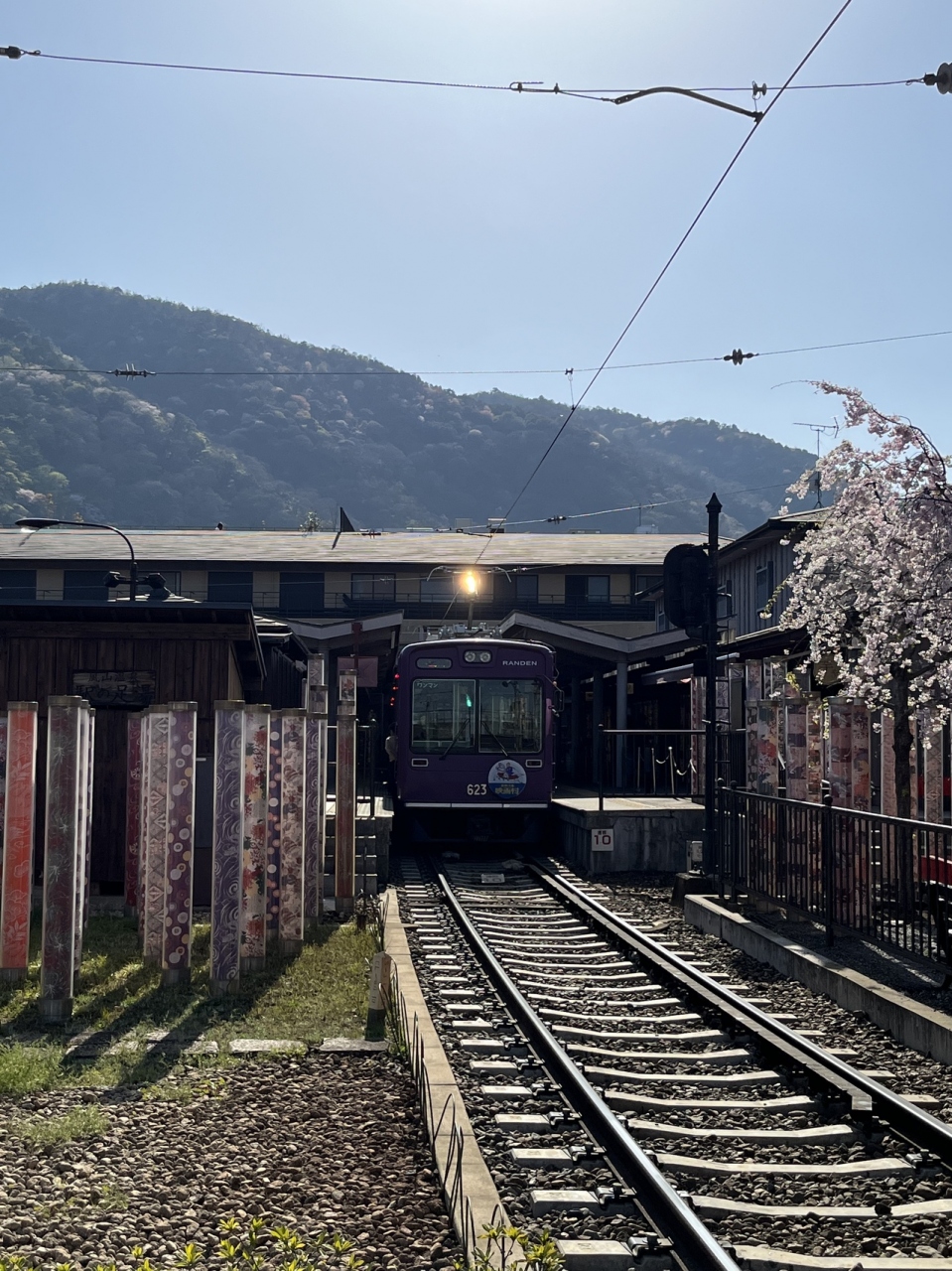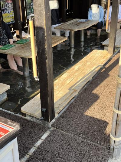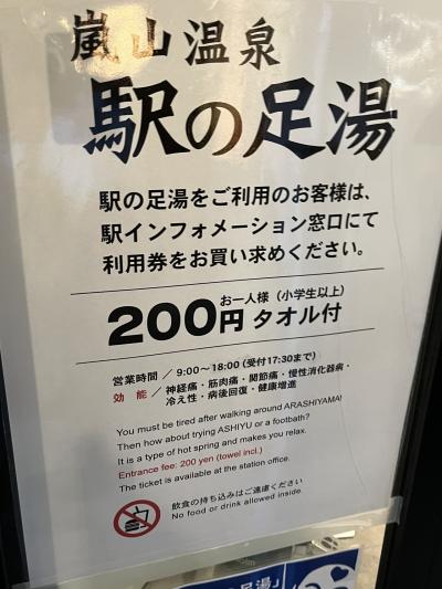 「嵐電 嵐山駅 」ホームの中にある こちらの【 嵐山温泉 足湯 】