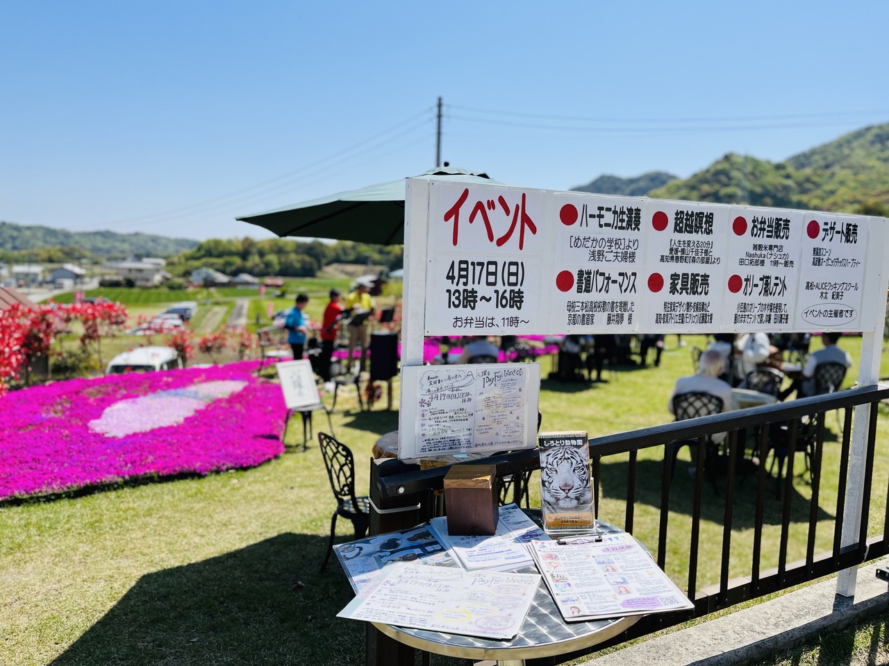 天気が良かったので パラソル席 で イベントのハーモニカ生演奏 を 聴いて