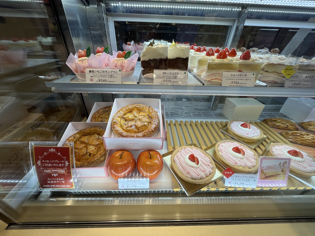 「バウムクーヘン」以外にも「アップルパイ」「ガトーショコラ」「ショートケーキ」もあります。
