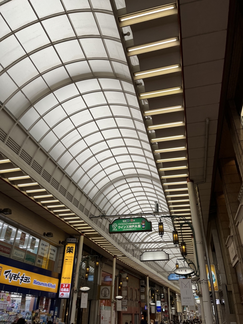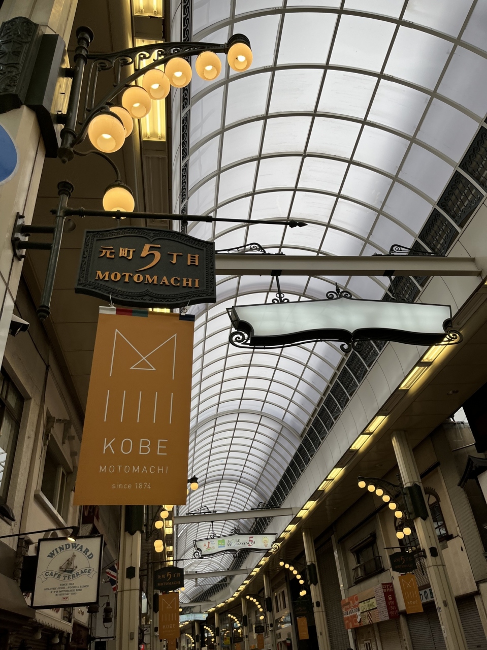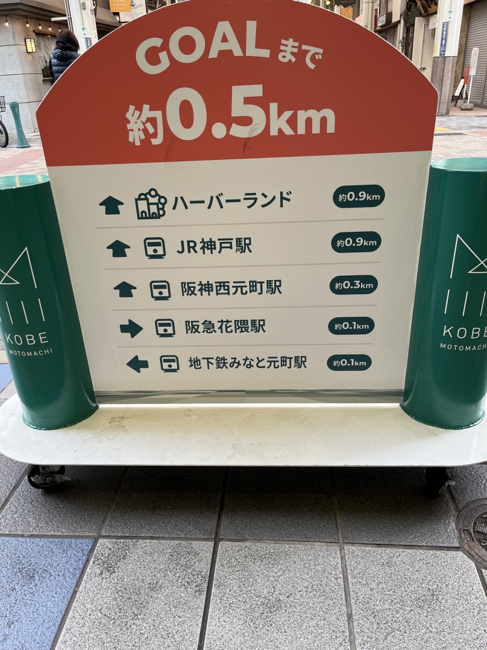 成人女性で 約1850歩。約⒈2km もある 長〜い「神戸元町商店街」