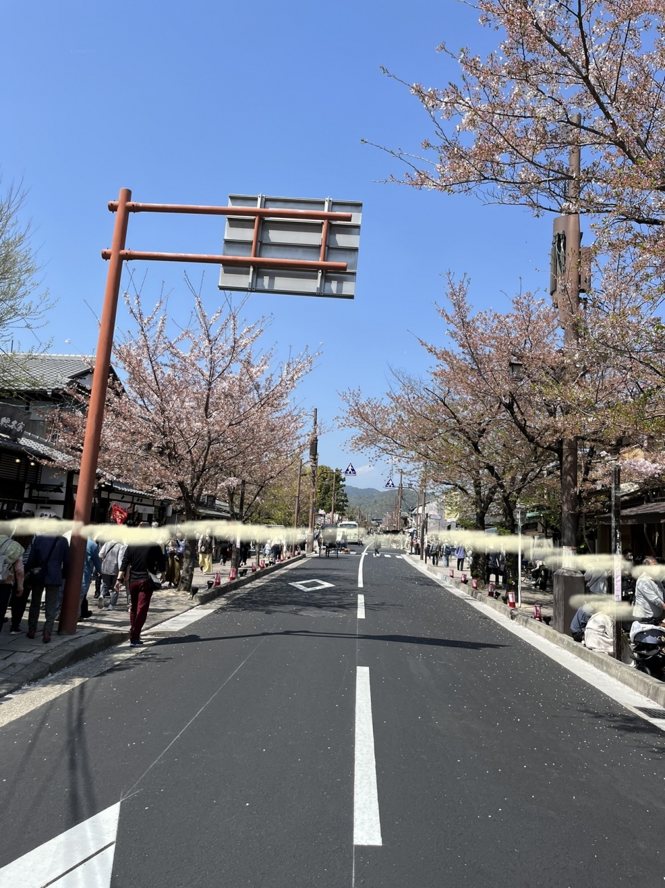 「 渡月橋」を渡って「嵐山」のメインストリートが こちらの【 嵐山商店街 】