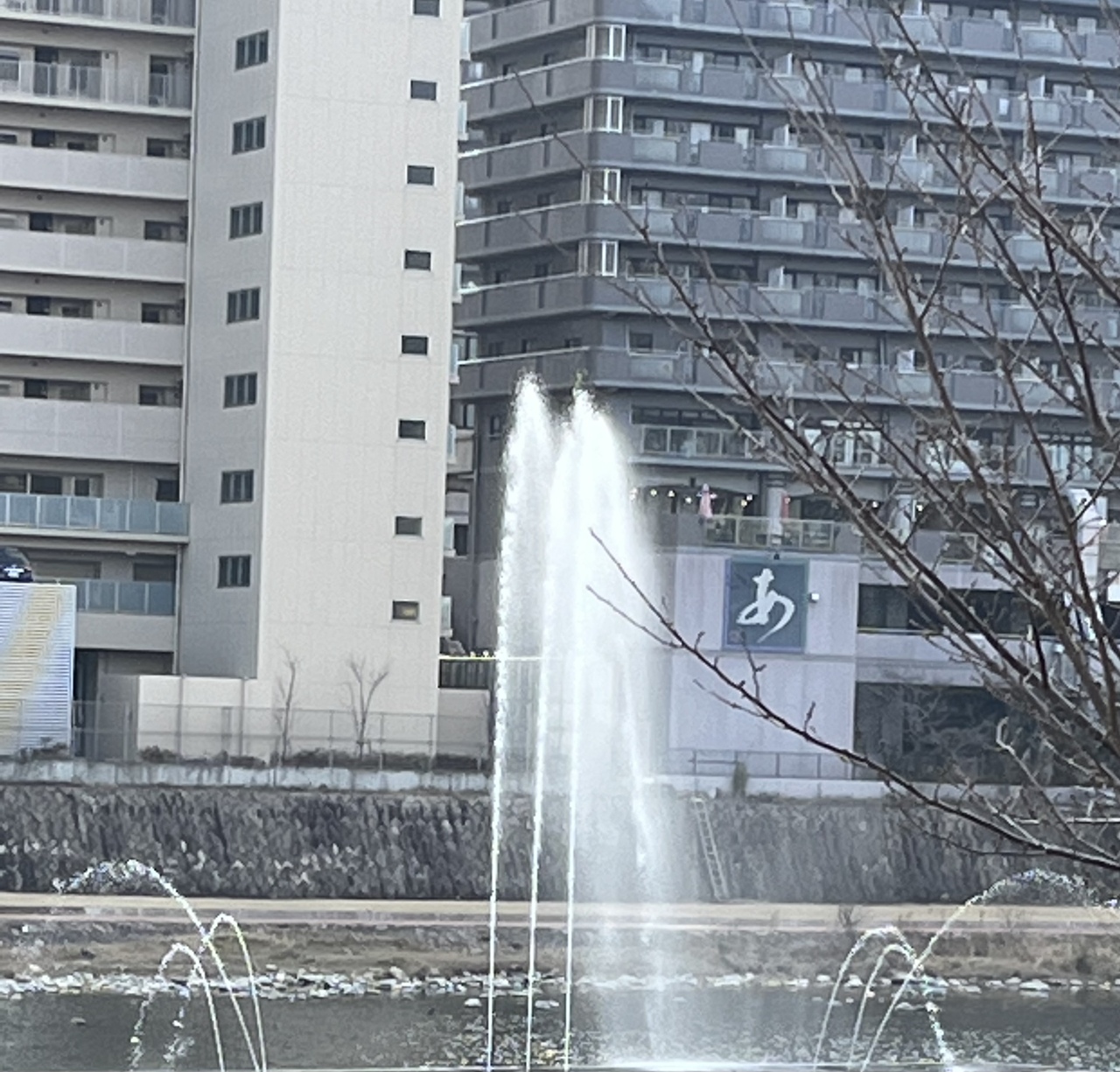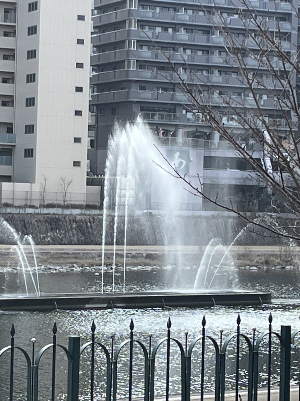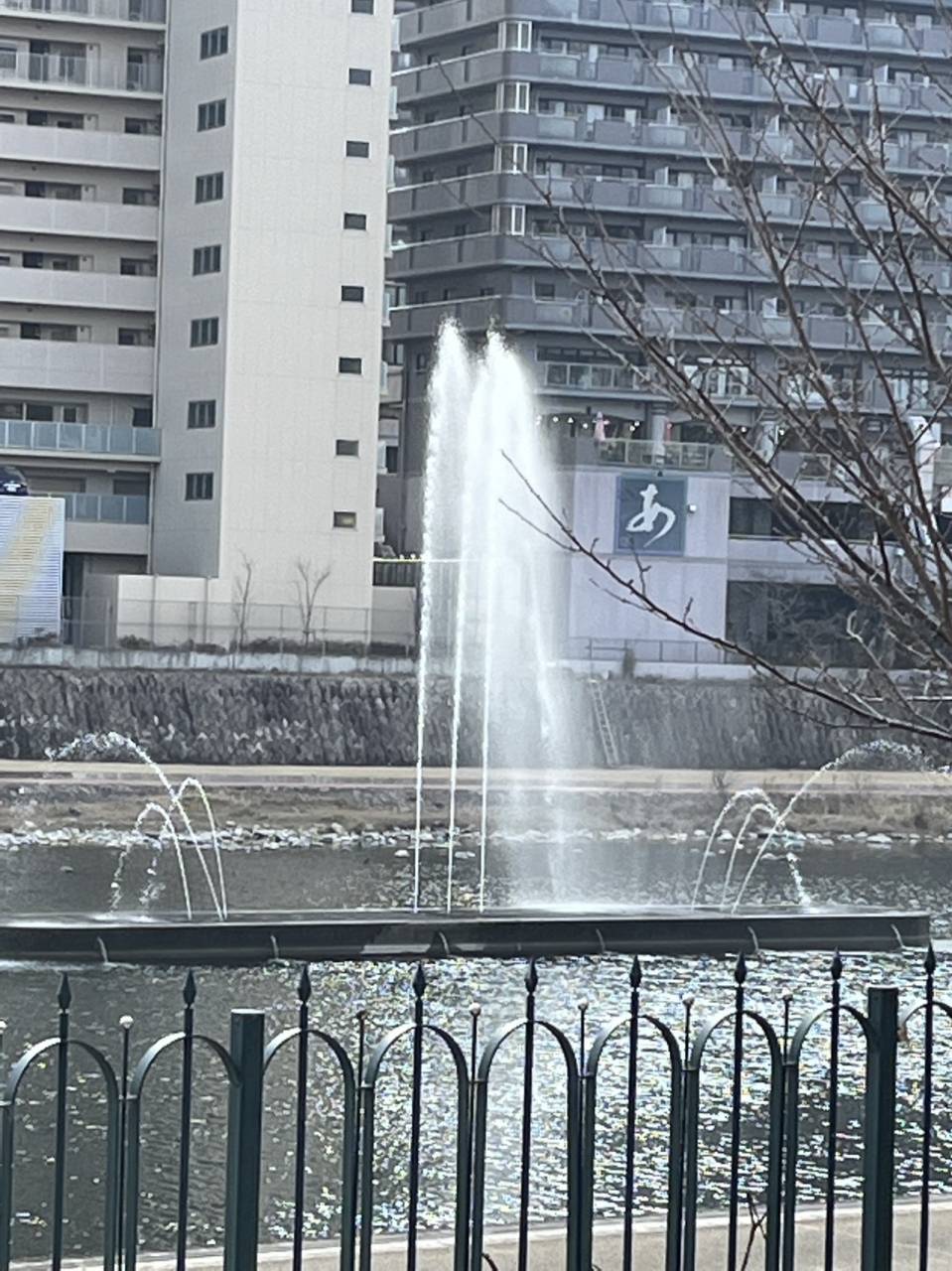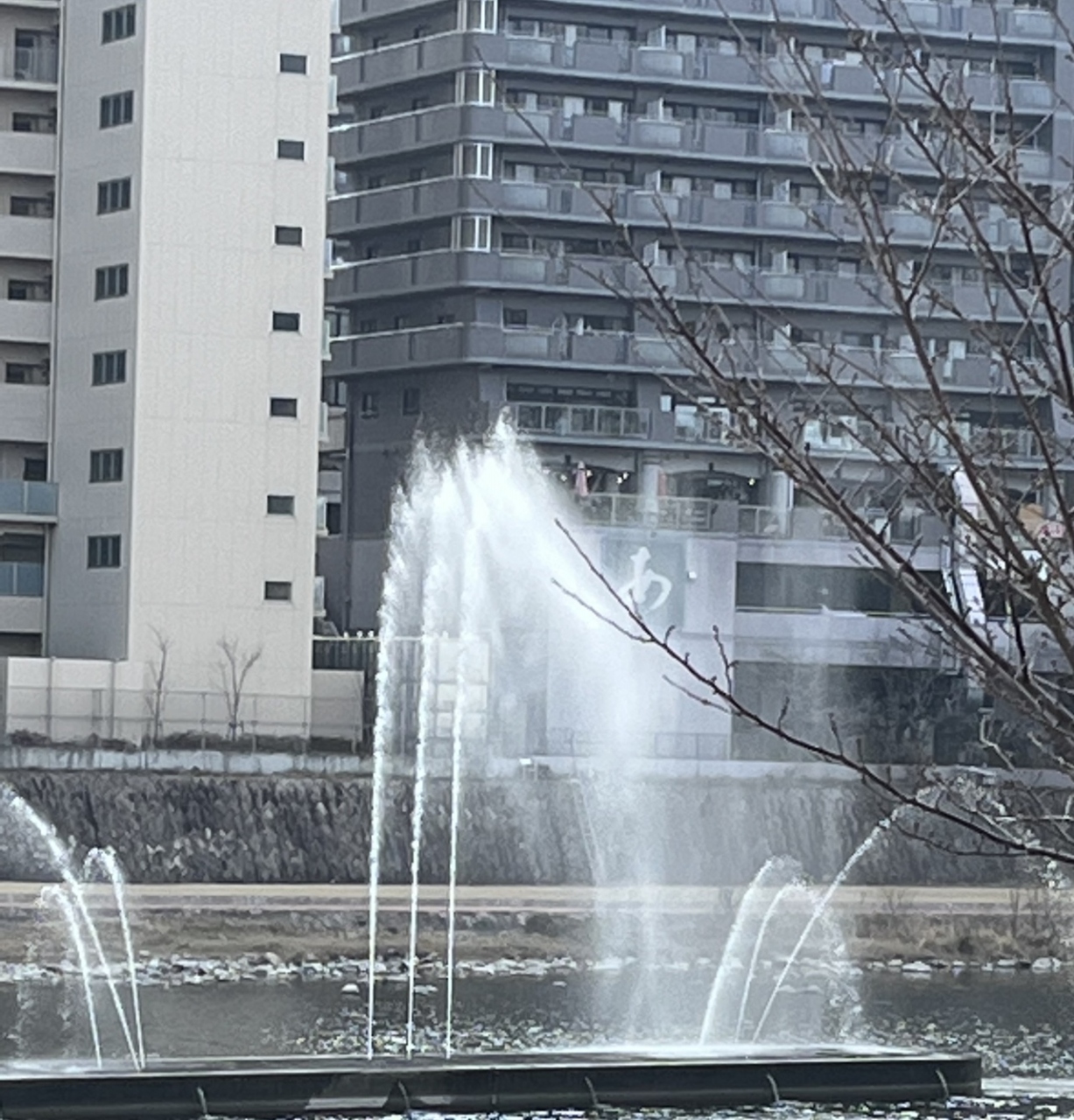 ( エッツ? 川の中に噴水?)