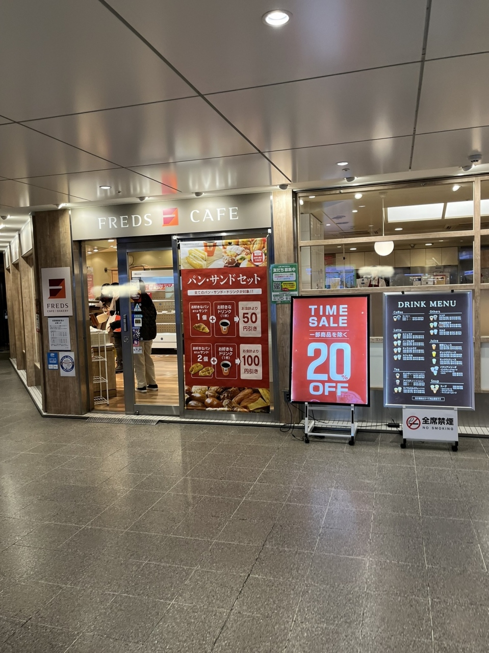 「阪急梅田駅」改札外2Fコンコ-ス にある こちらのお店【 フレッズカフェ 梅田店 】