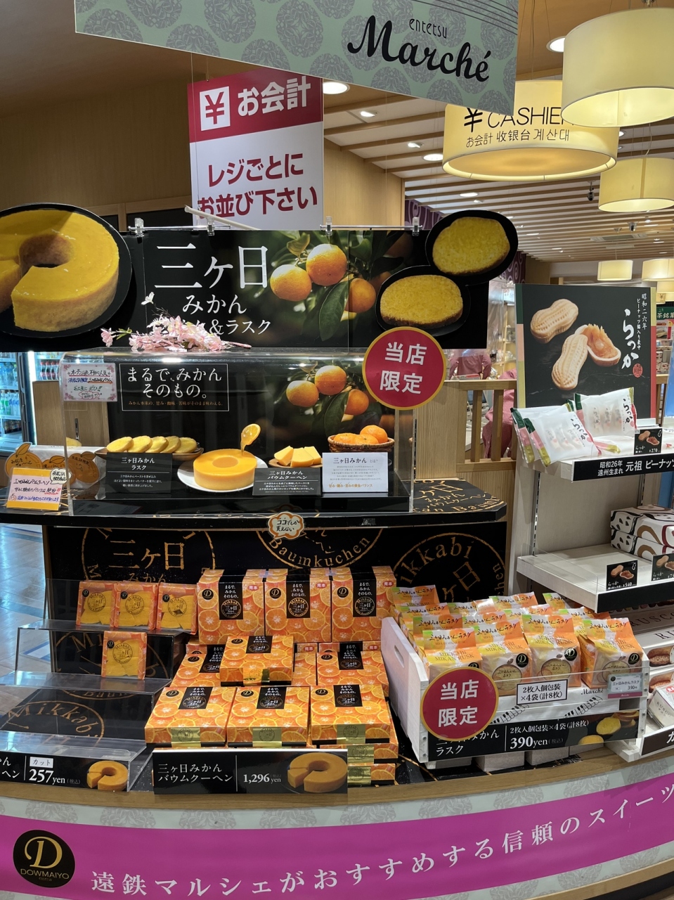プレみや〈みかん最中〉など… いろいろな おみやげが並んでいます