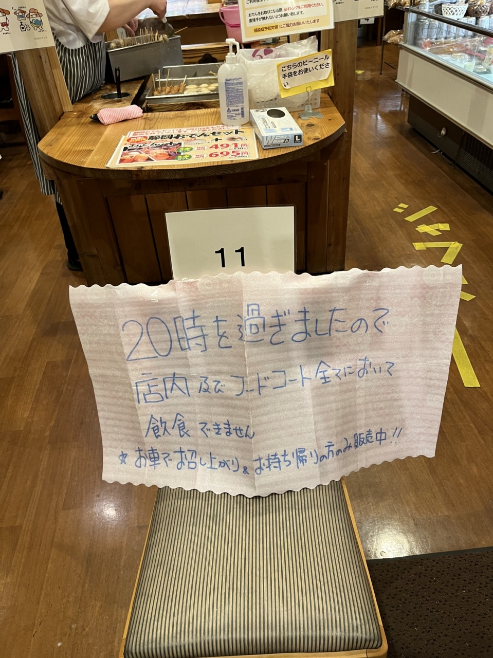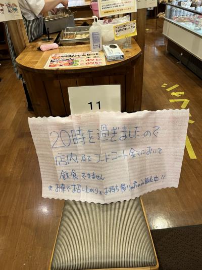 『20時を過ぎたので 店内・フードコートで飲食できません』との 貼り紙がありました。