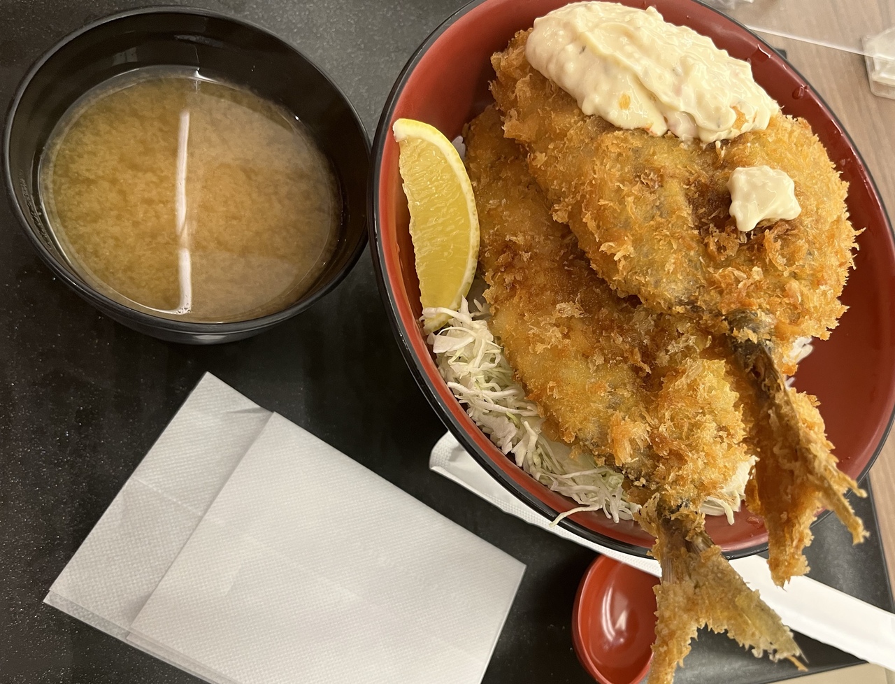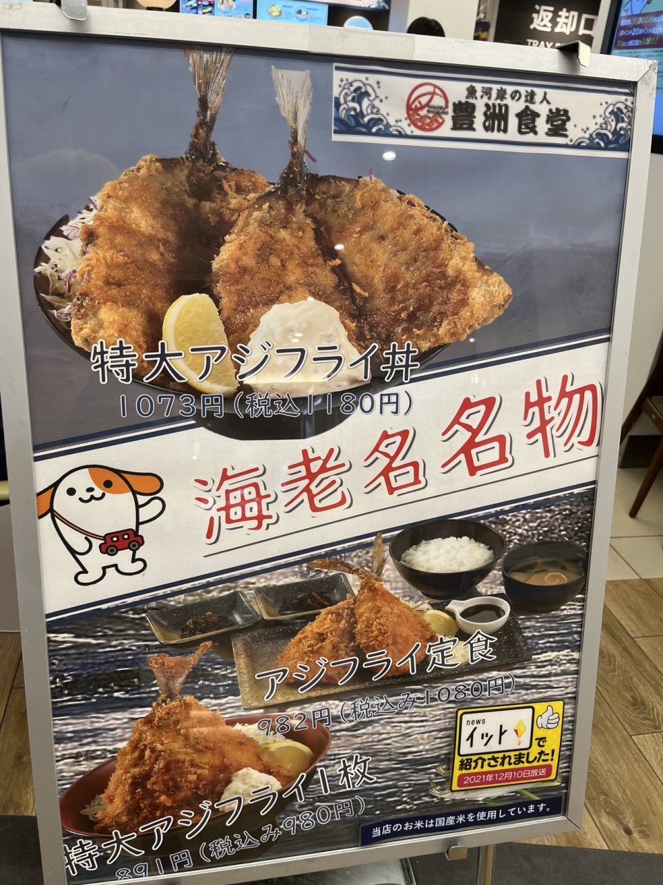 〈海老名名物 特大アジフライ丼〉が人気です。メディアでも紹介されたみたい。