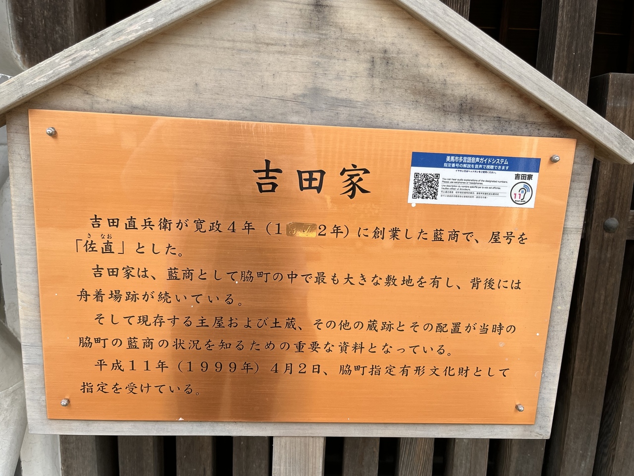 「吉田直兵衛」が 寛政4年に創業した藍商で、屋号を「佐直」とした。