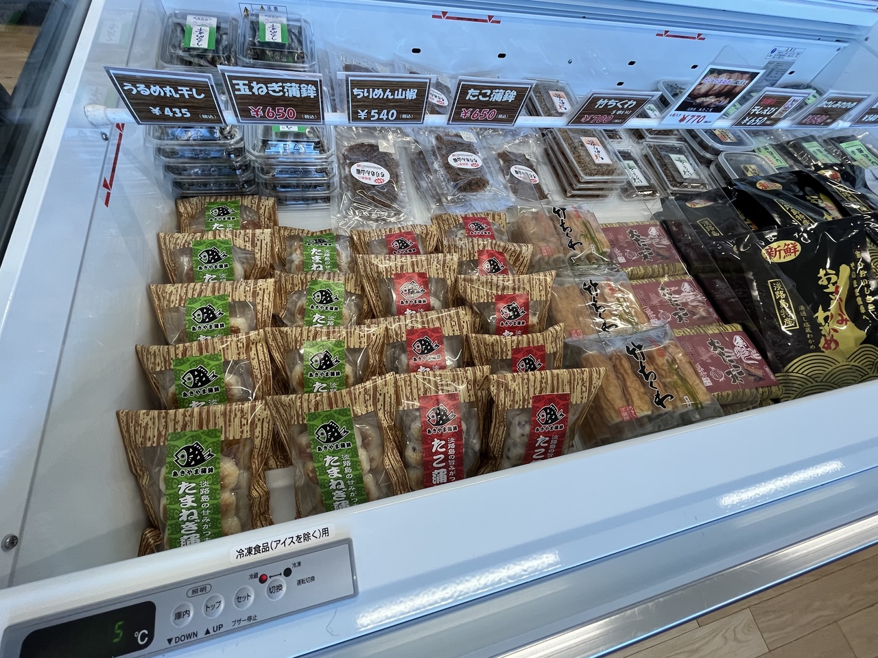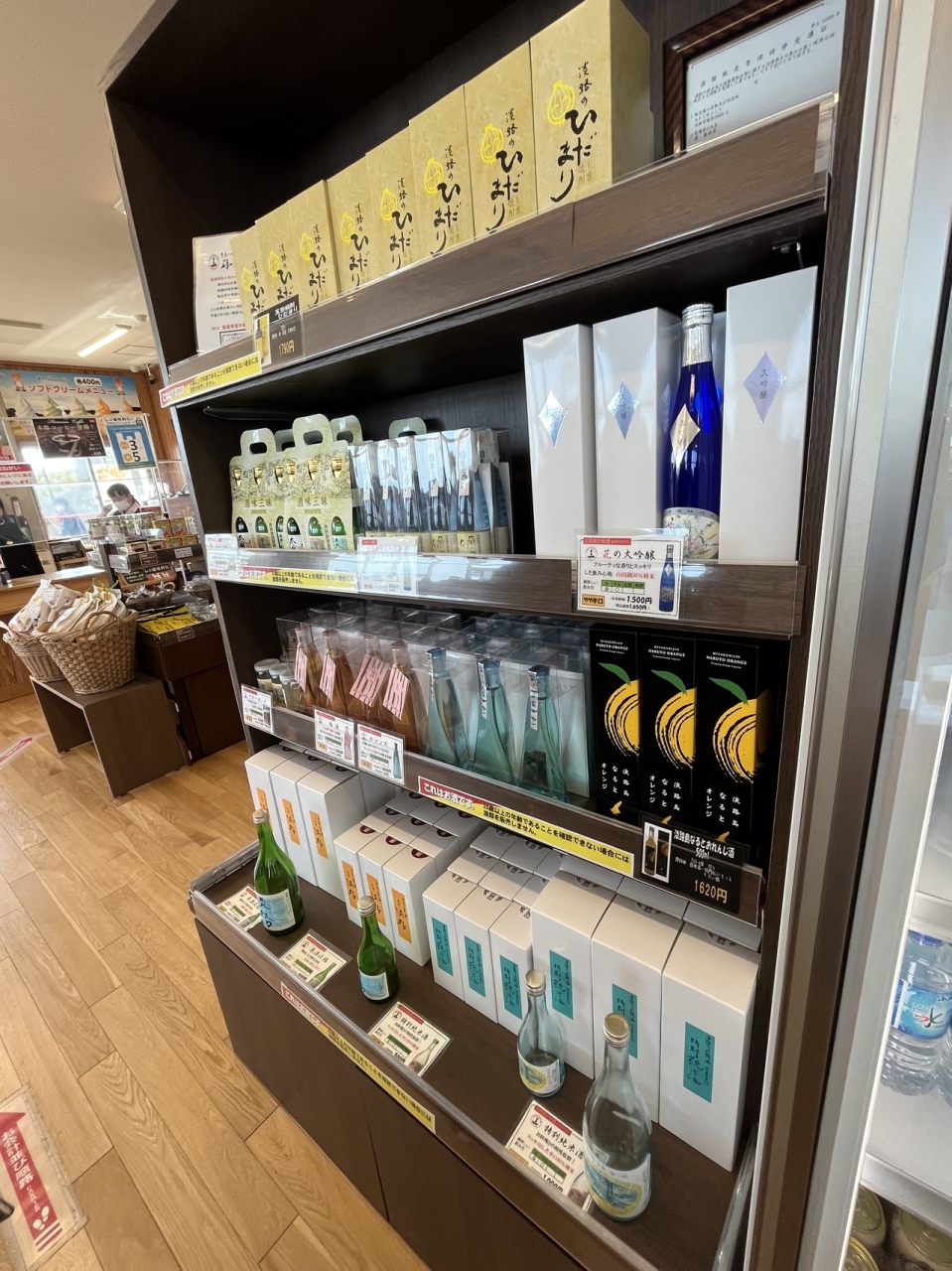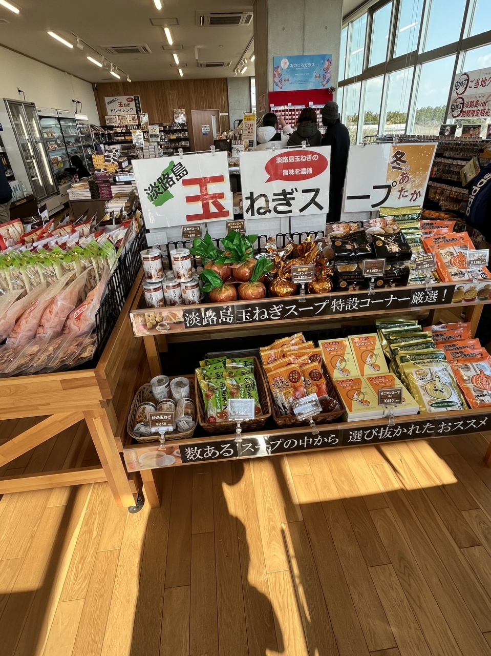 「玉ねぎスープ」「玉ねぎかまぼこ」そして「お酒」などの お土産が並んでいます。
