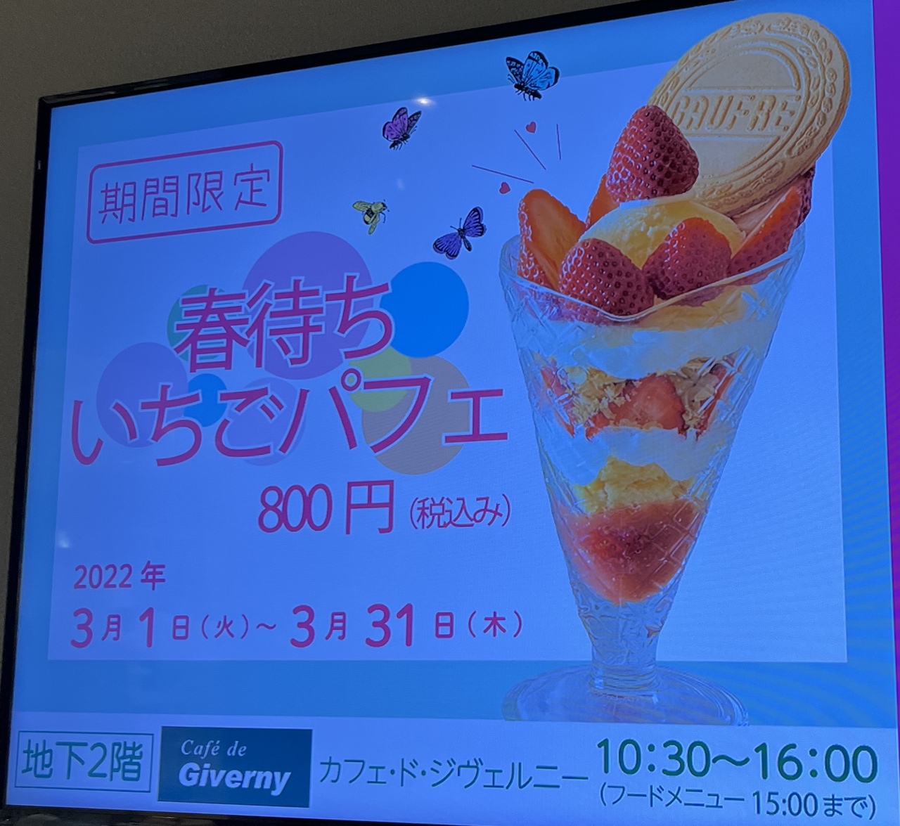 今なら「春待ち いちごパフェ」があります。期間限定 なので…気になる方は お早めに〜