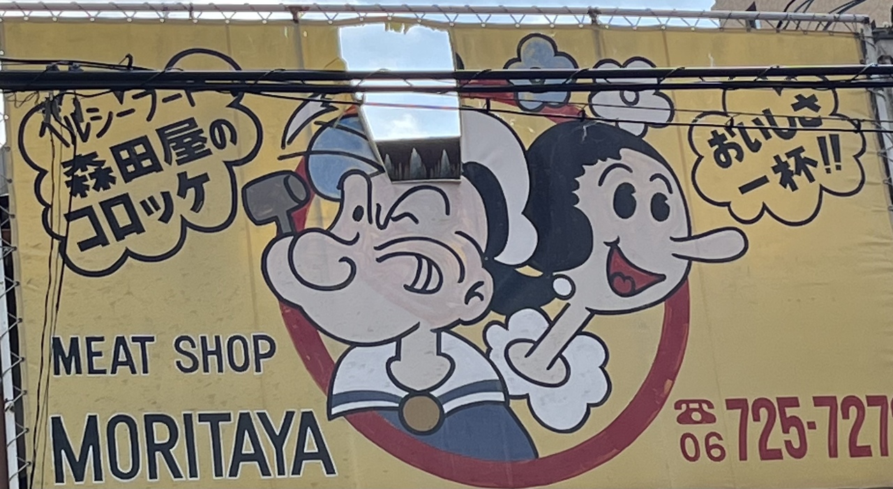 お店の ポパイ の頭が破れていて、残念ですね…修理しないのかな?- 旅行時期