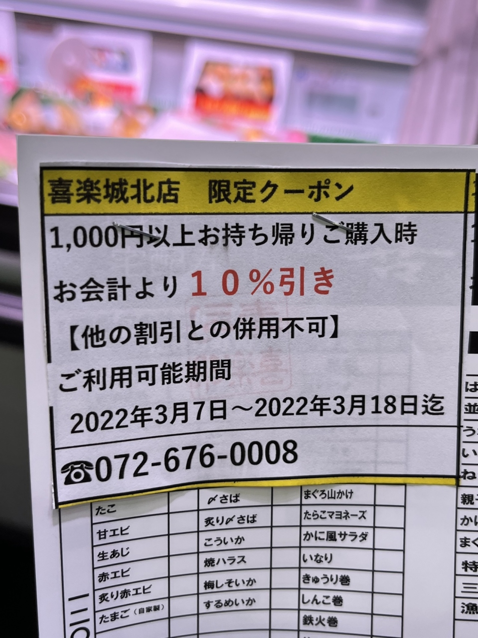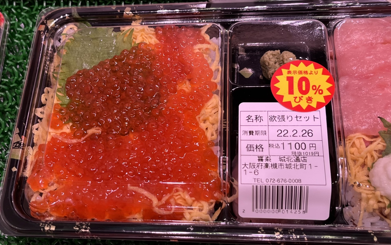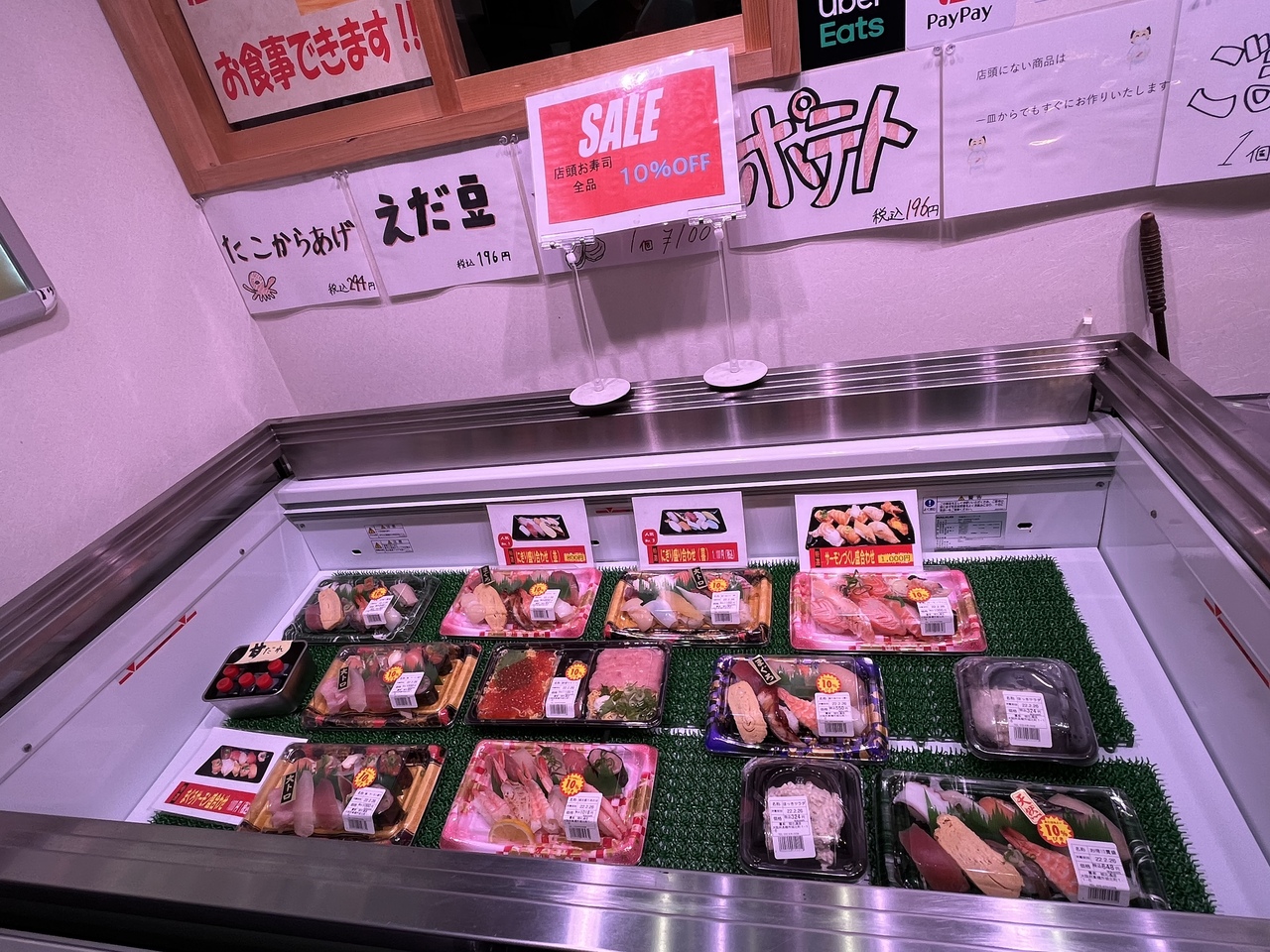 この時 夕方だったので 店頭のお寿司 全品10%OFFでした。