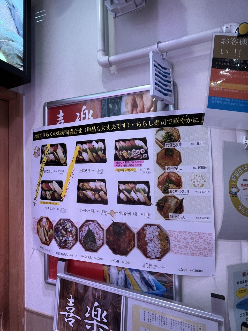 お持ち帰りのお寿司が いろいろあって、どれも美味しそうです。