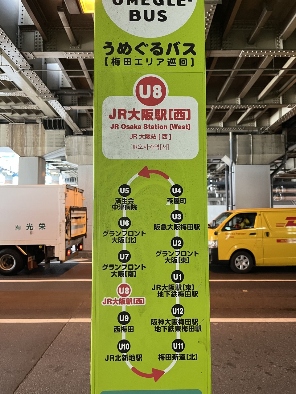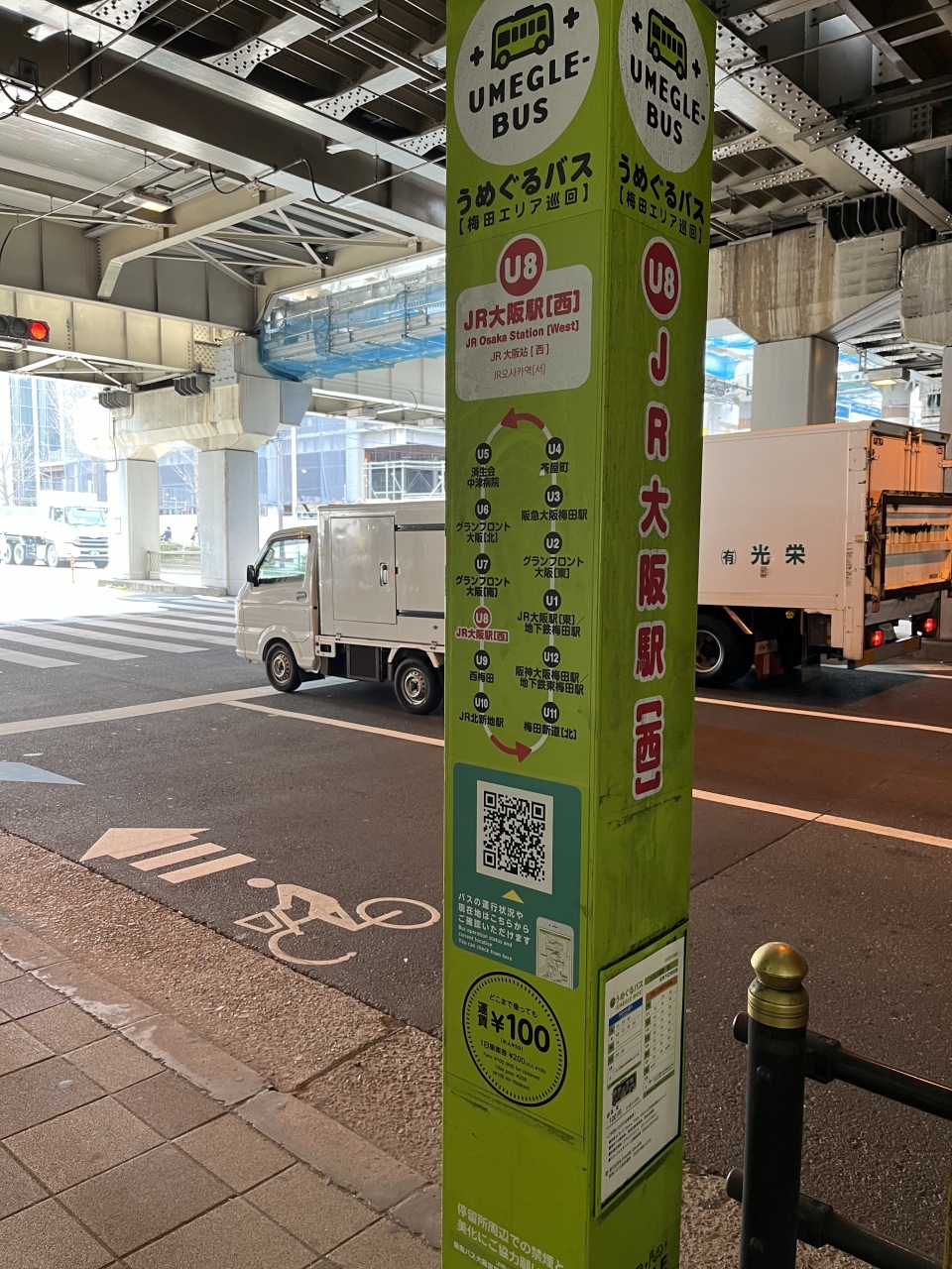 大阪梅田に 12ヶ所ある 停留所を ぐるっと巡回する こちらの【 うめぐるバス 】