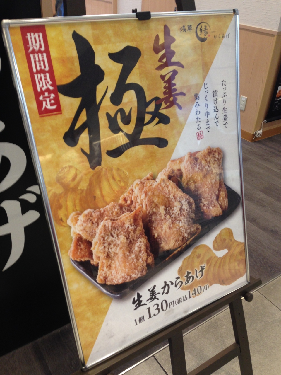 この時は年末でしたが、「生姜からあげ」がありました。期間限定メニュー。