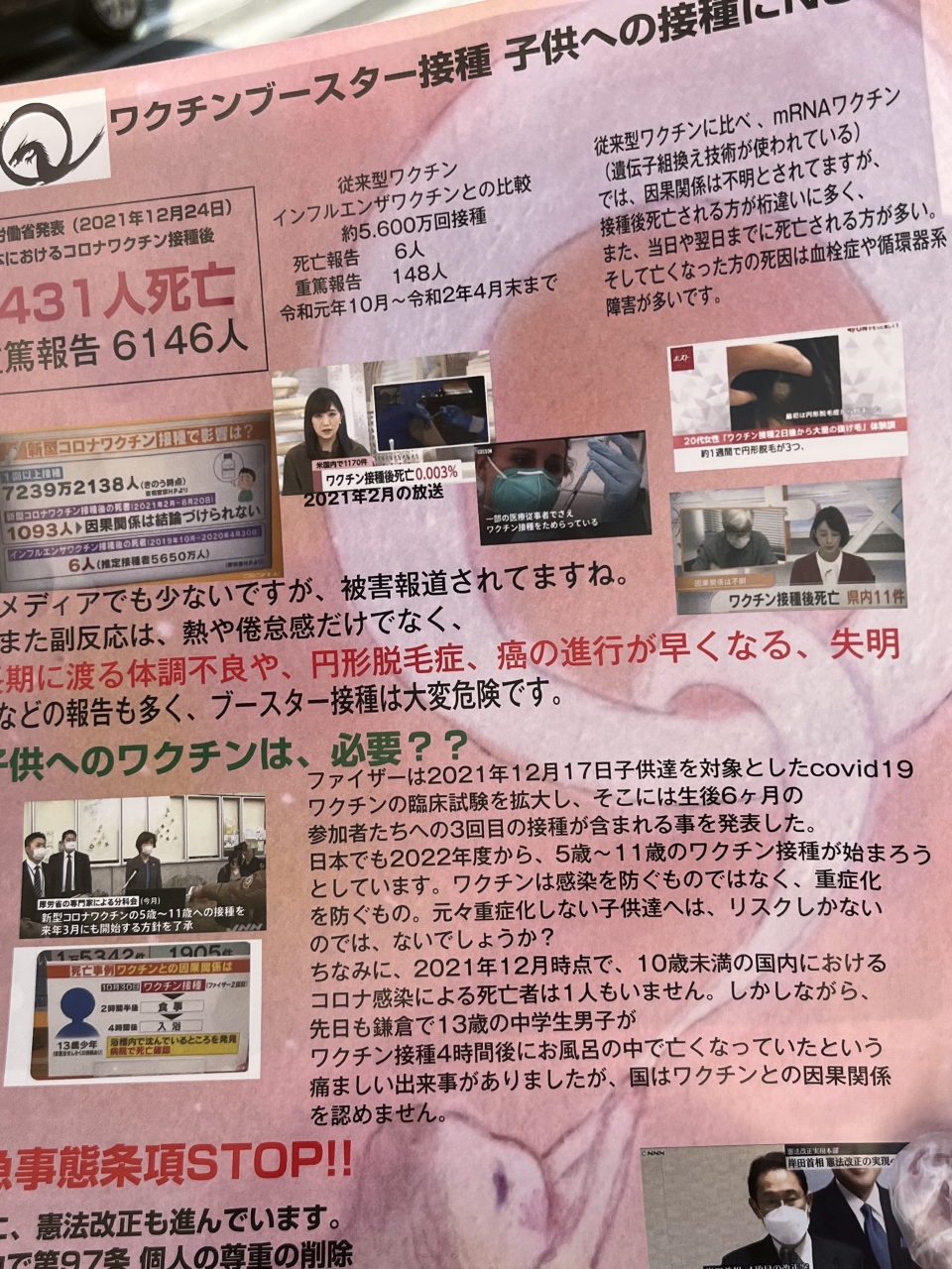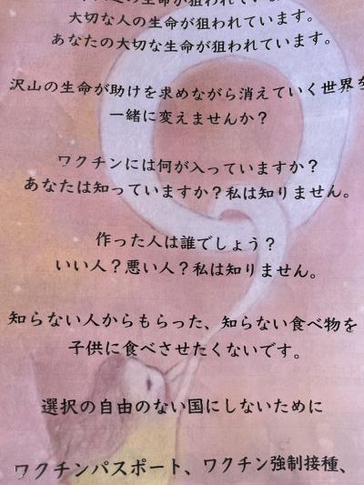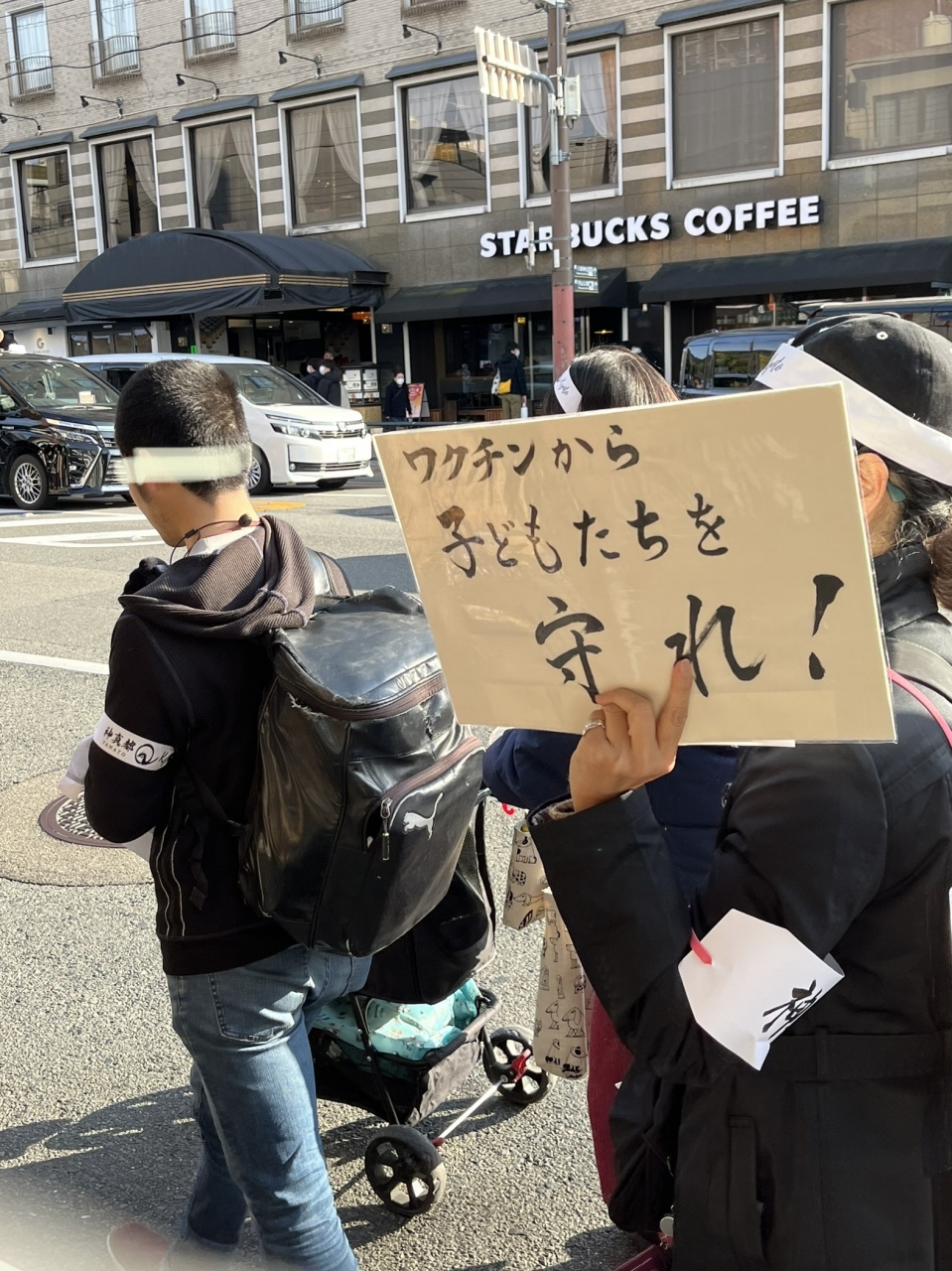 何のデモかと思って見ていたら、「ワクチンから子供たちを守れ!」と書かれたプラカード。