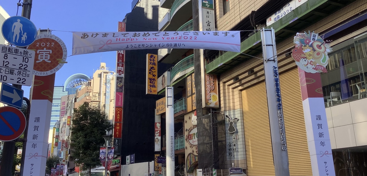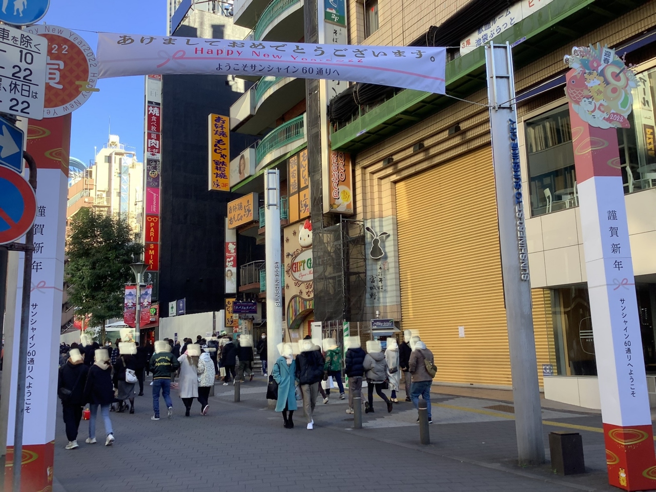 元旦に「サンシャインシティ」へ行くために こちらの【 サンシャイン60通り 】を歩きました。
