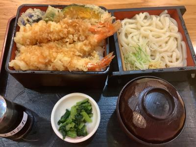 「海老天重とミニそばセット」の 「そば」を「うどん」に かえてもらって、オーダー。